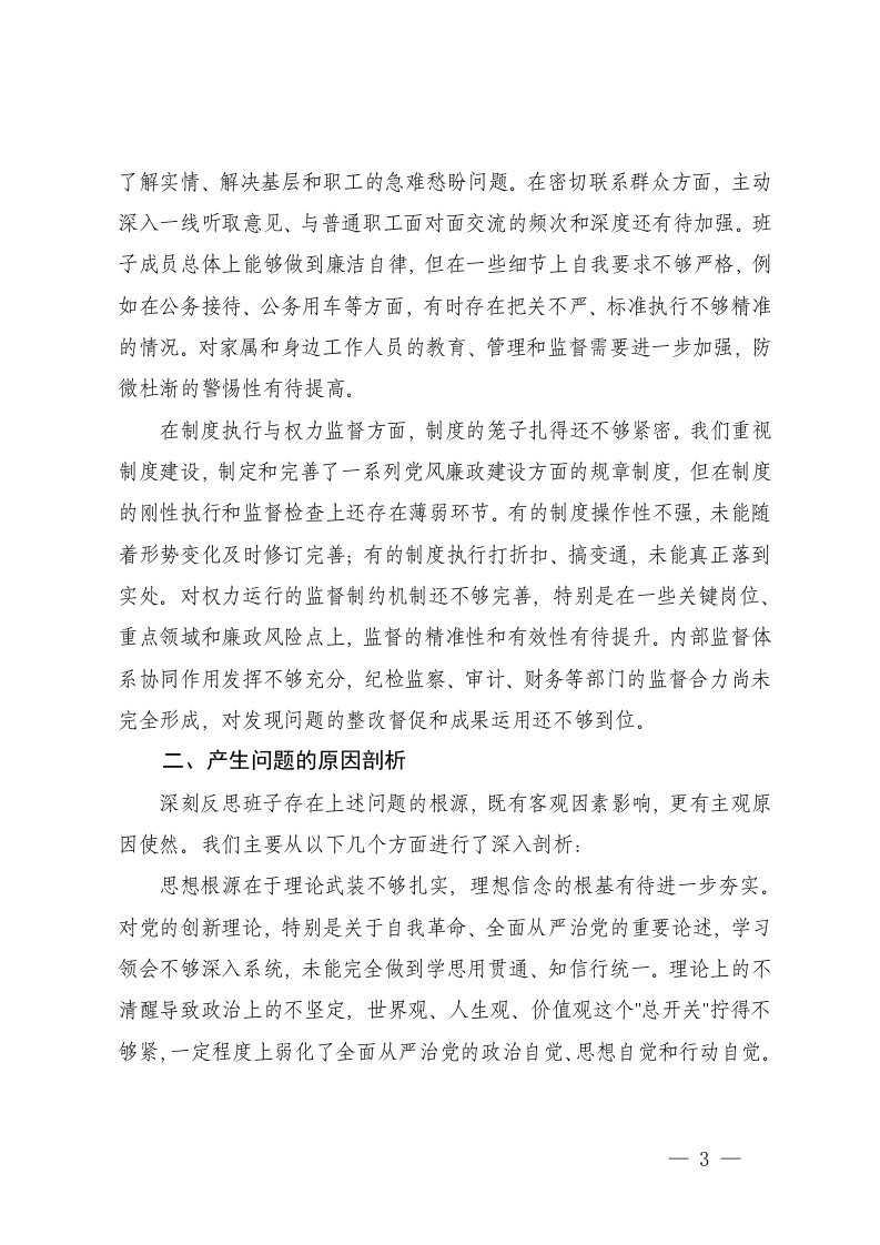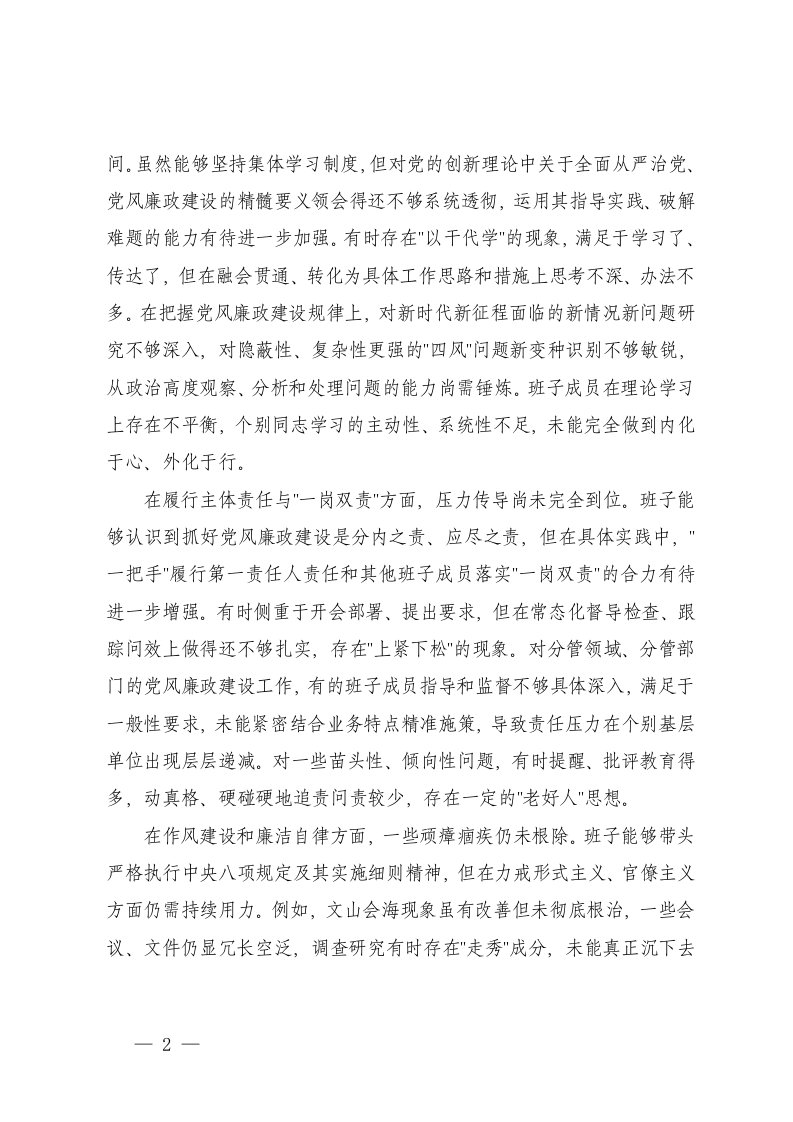在理论学习与政治建设方面在履行主体责任与一岗双责方面在作风建设和廉洁自律方面在制度执行与权力监督方面领导班子2025年度党风廉政建设专题民主生活会对照检查材料