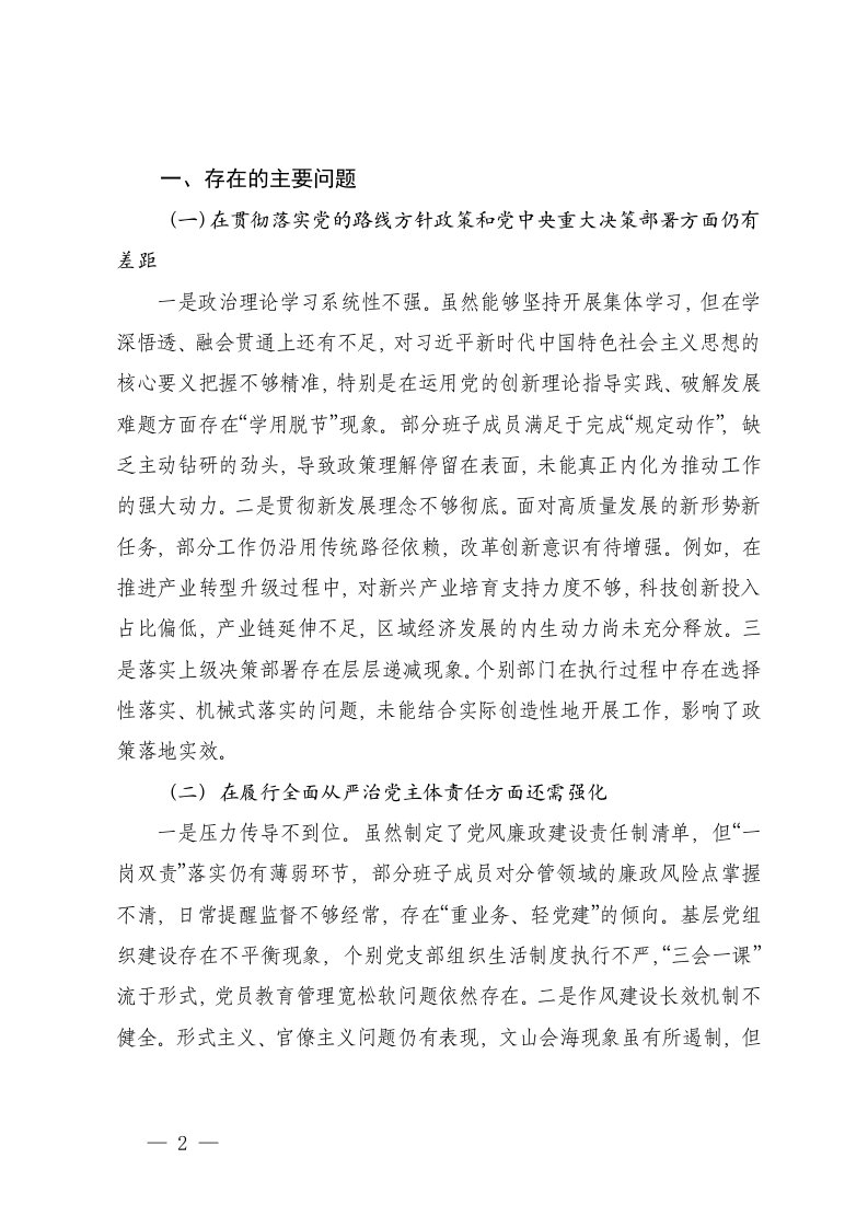 在贯彻落实党的路线方针政策和党中央重大决策部署方面仍有差距在履行全面从严治党主体责任方面还需强化2025年领导班子关于县委巡察组反馈问题整改专题民主生活会对照检查材料