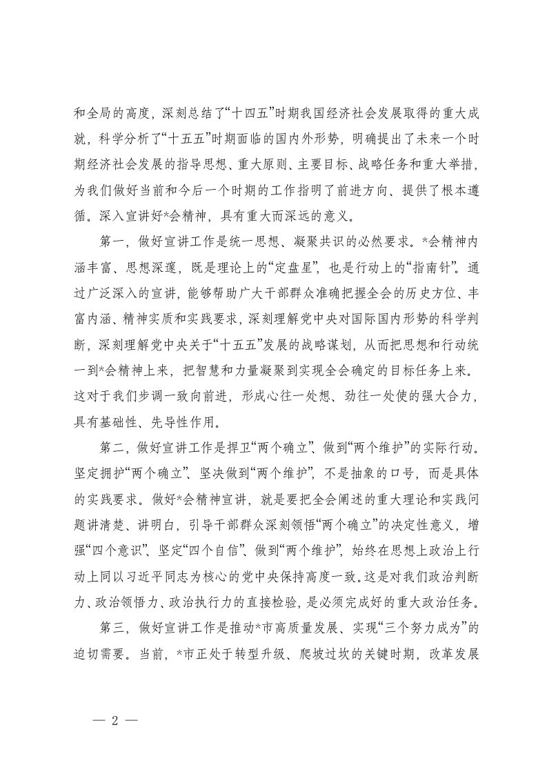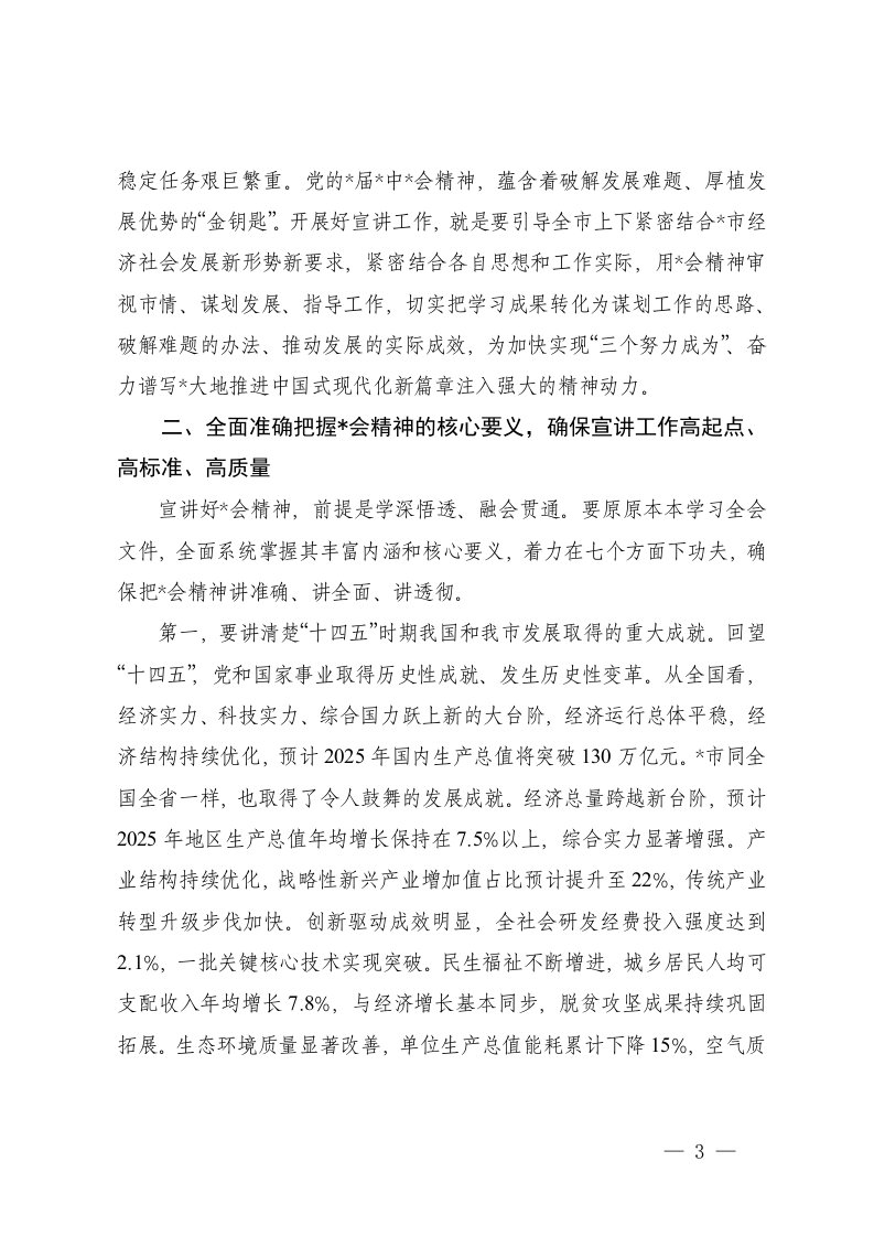 标题:2025年在全市学习贯彻党的x会精神宣讲报告上的讲话总结讲话