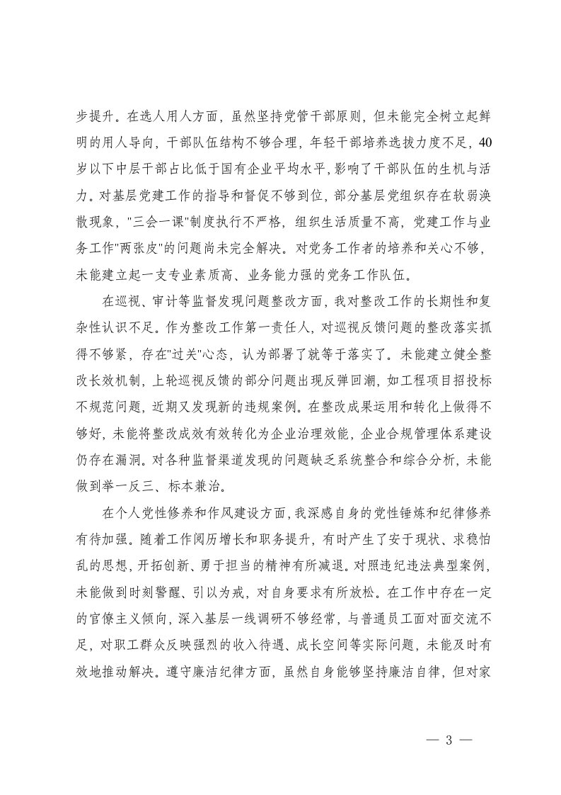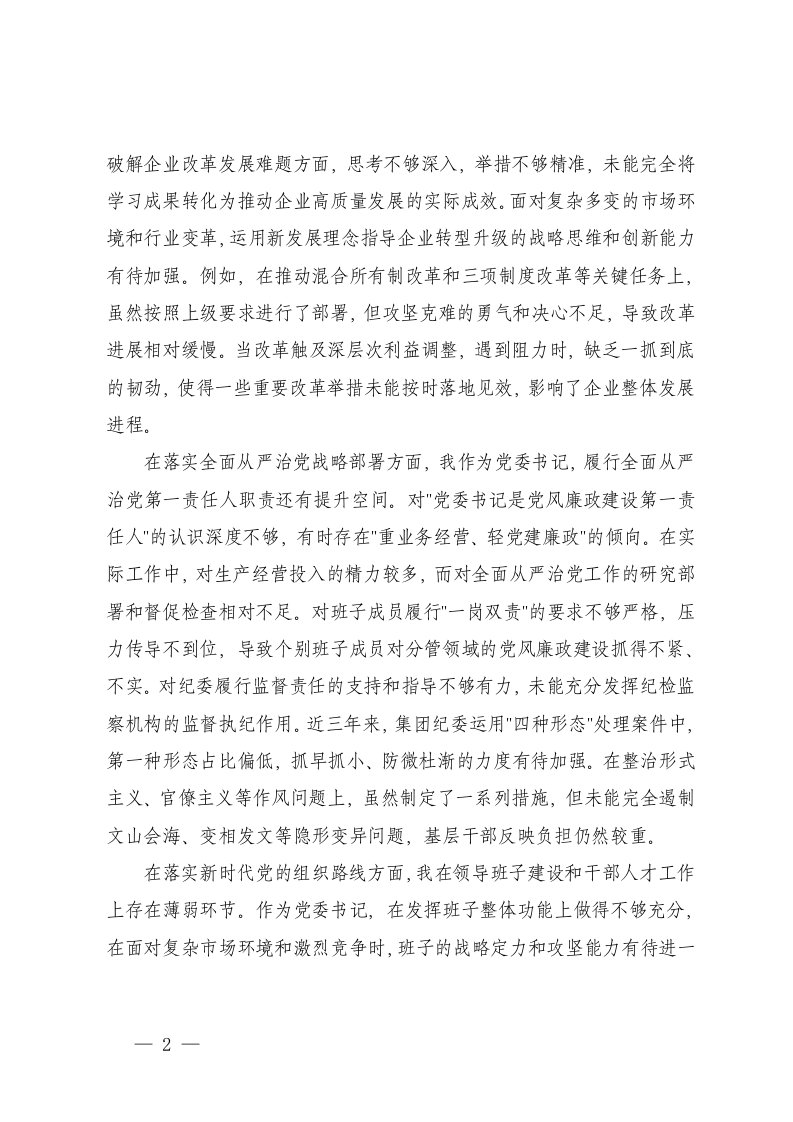 国企党委书记巡视反馈意见整改专题民主生活会对照检查材料在贯彻落实党中央重大决策部署和上级党委工作要求方面在落实全面从严治党战略部署方面在落实新时代党的组织路线方面