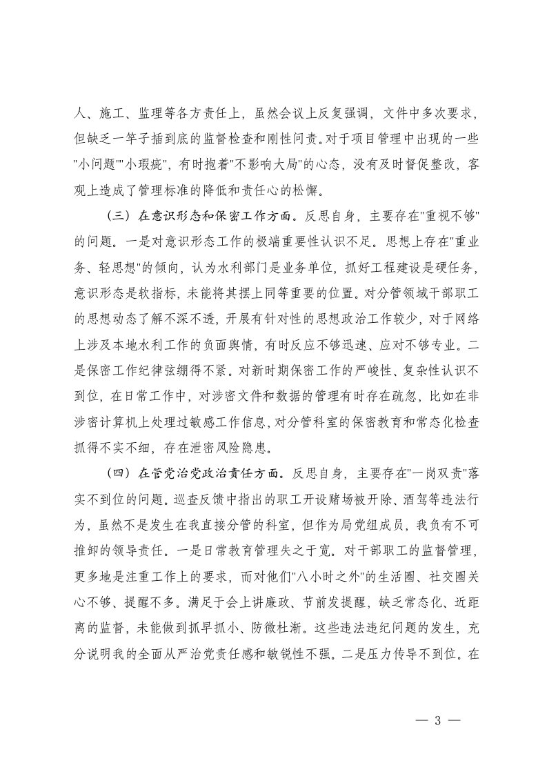 民主生活会,对照检查材料,对照检查,巡察,党组,生活,学习,专题民主生活会,专题,材料水利局党组成员巡察整改专题民主生活会个人对照检查材料在学习贯彻习近平总书记关于治水的重要论述方面民主生活会,对照检查材料,对照检查,巡察,党组,生活,学习,专题民主生活会,专题,材料水利局党组成员巡察整改专题民主生活会个人对照检查材料在学习贯彻习近平总书记关于治水的重要论述方面