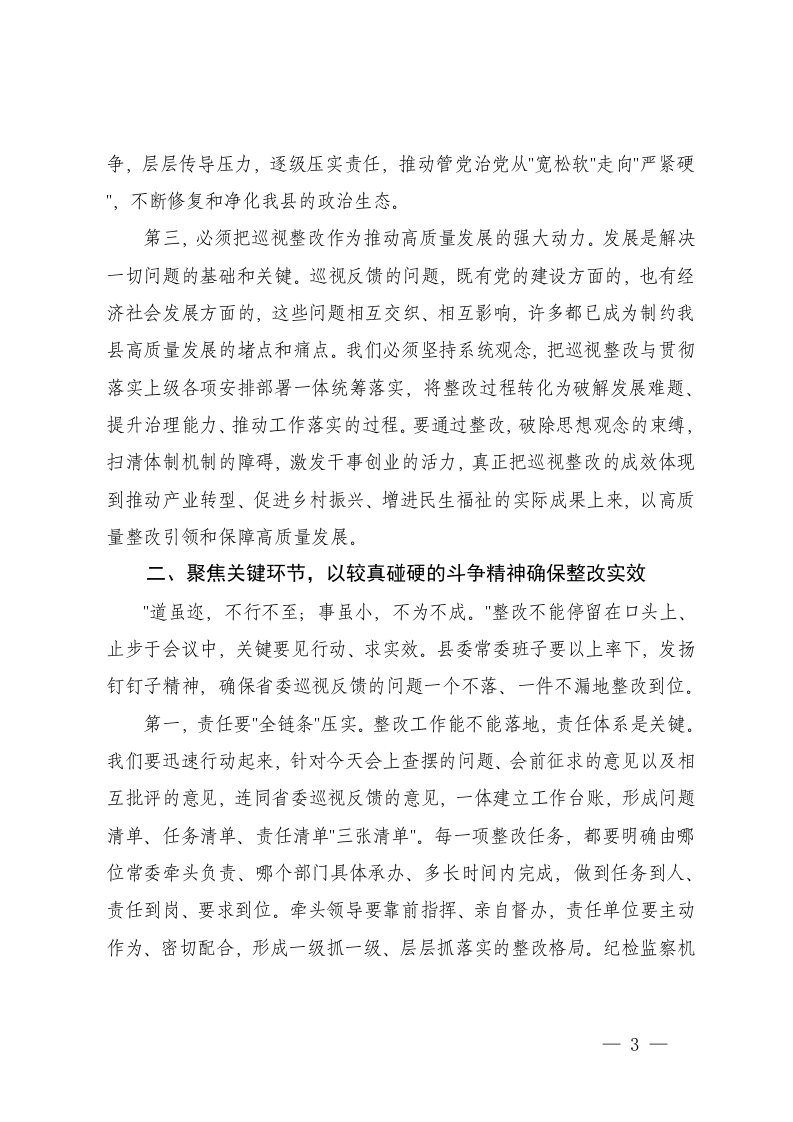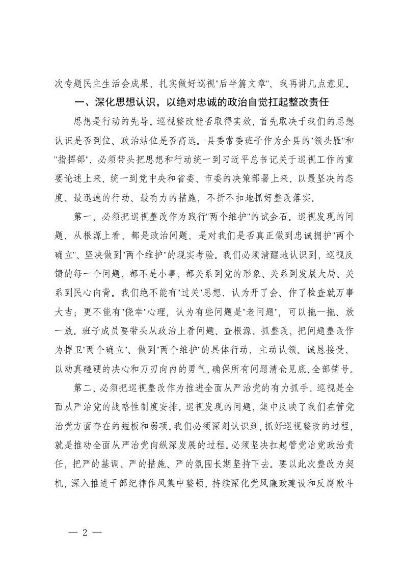 标题:2025年在县委常委班子巡视整改专题民主生活会上的总结讲话