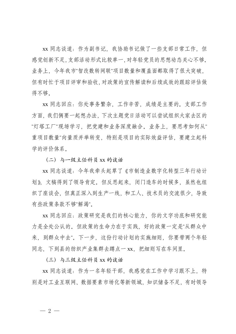 标题:市工业和信息化局数字产业处党支部2025年度组织生活会会前谈心谈话记录