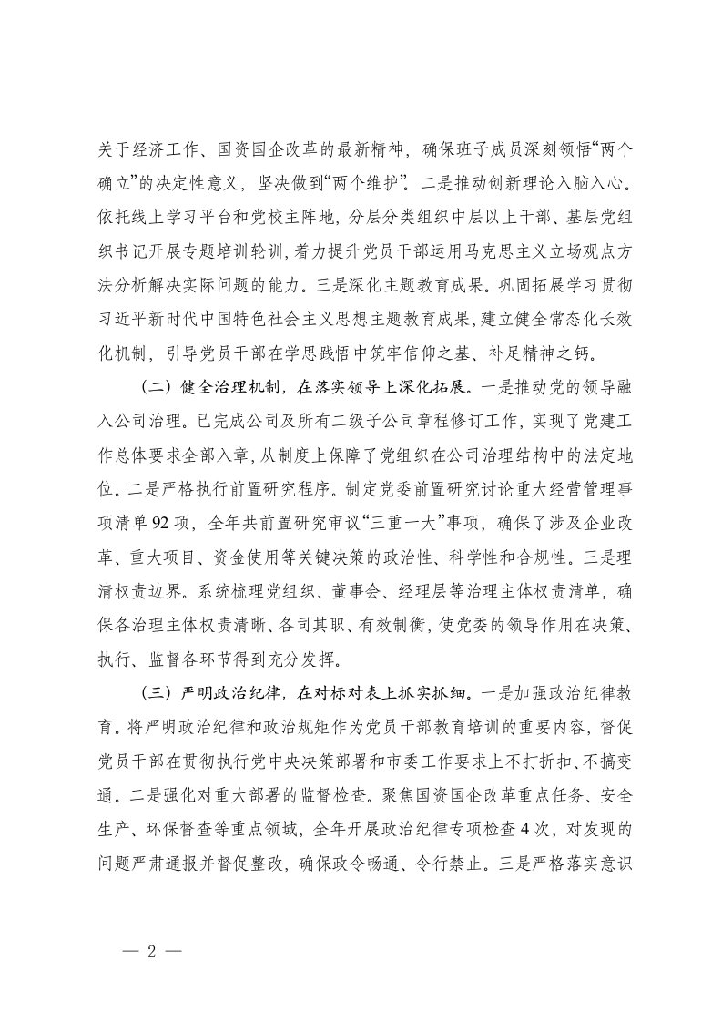 标题:3篇国企党委2025年党建工作总结及2026年计划