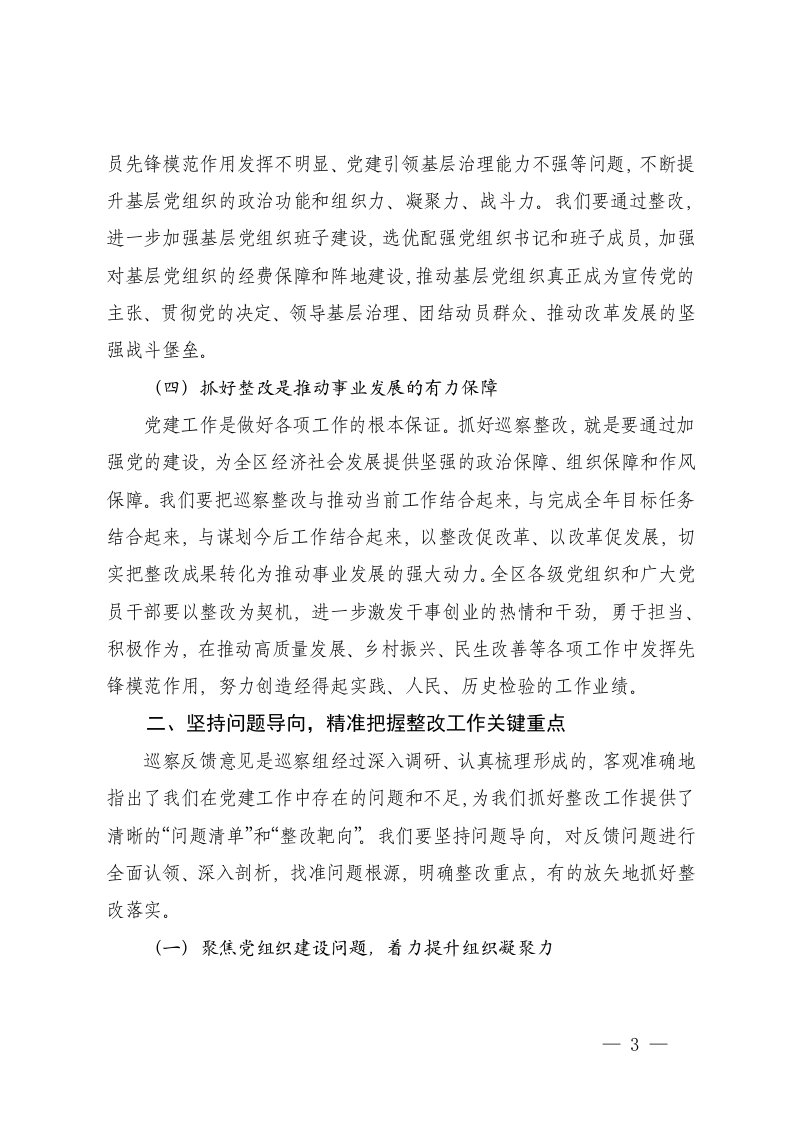 县委书记在市级巡察反馈问题整改专题会上的讲话在党建巡察反馈问题整改专题部署会上的讲话