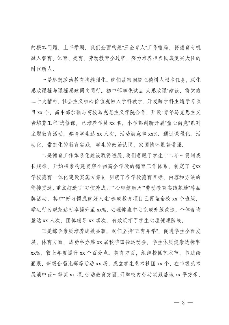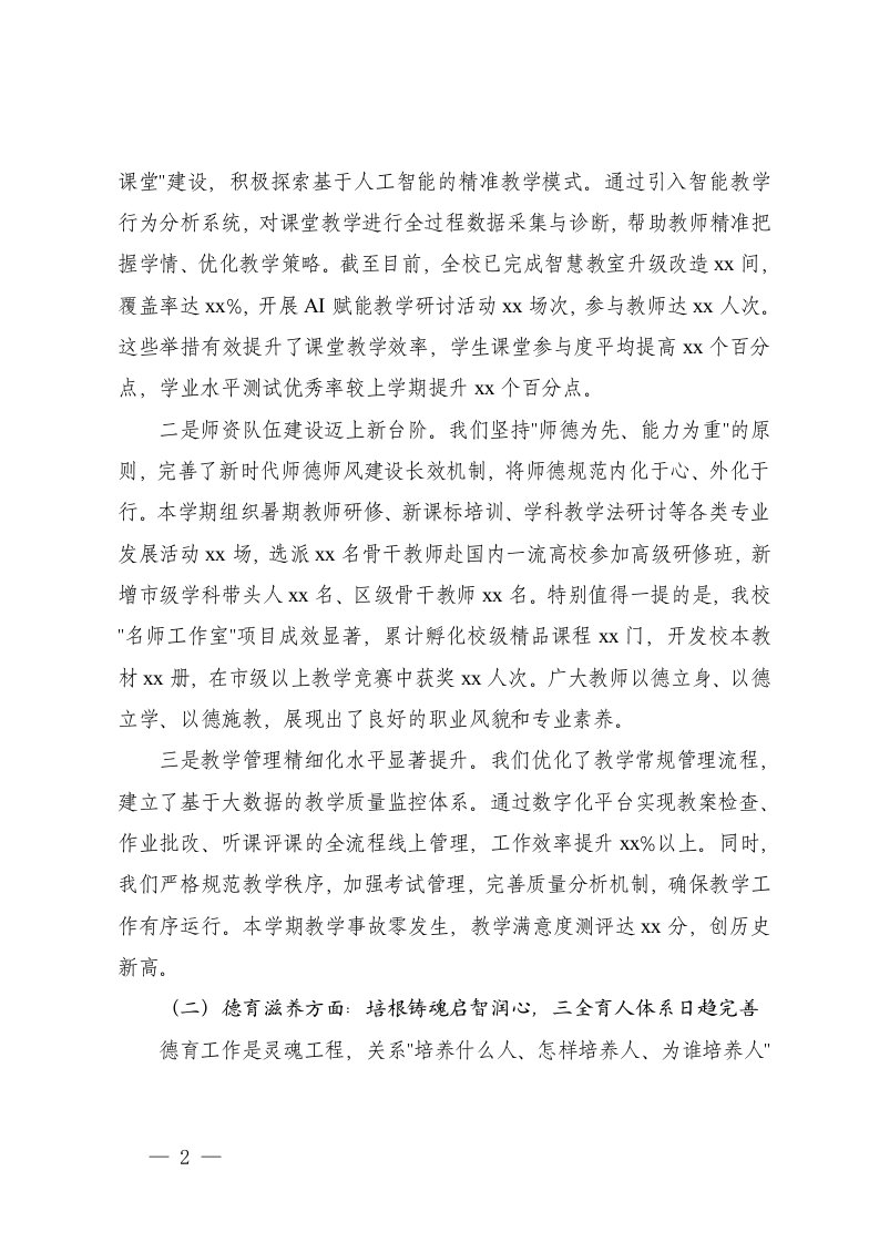 标题:学校2025年秋季学期半期工作总结会上的讲话