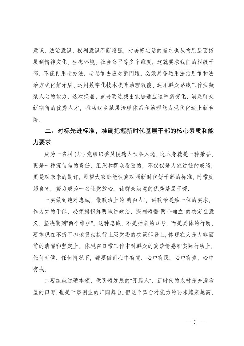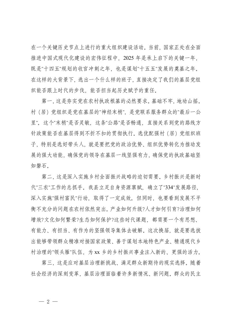 在2025年村居党组织换届选举候选人预备人选集体谈话会议上的讲话两委换届工作会议上的讲话