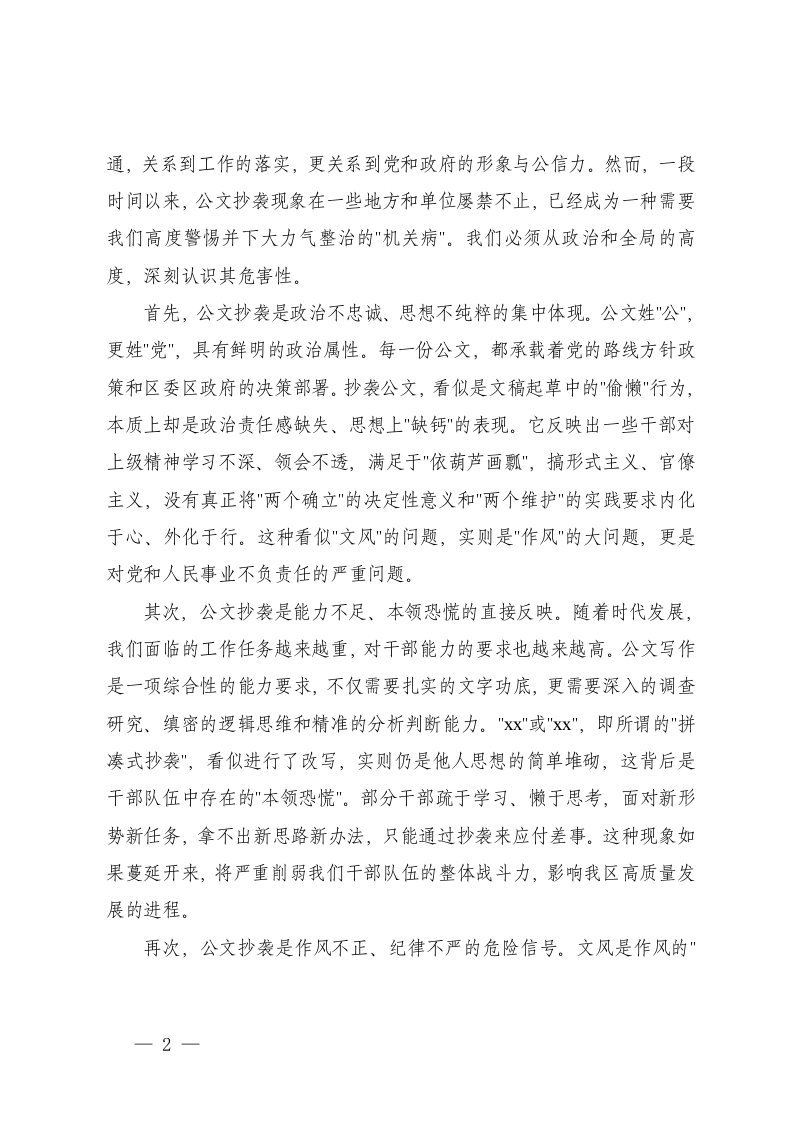 2025年整治形式主义为基层减负工作总结理论学习中心组整治公文抄袭专题学习研讨会议上的交流发言