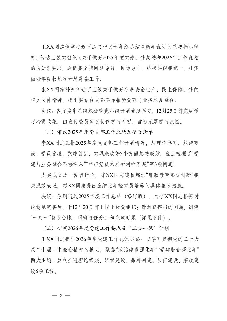 会议记录2025年12月支委会会议记录会议记录2025年12月支委会会议记录