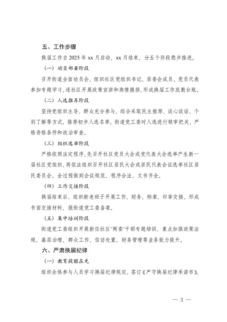 标题:2025年社区两委换届选举工作实施方案及村居两委换届考察材料