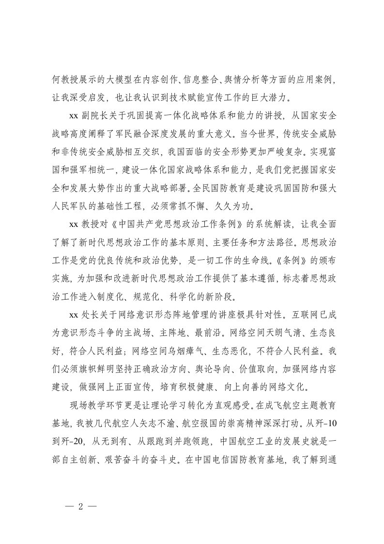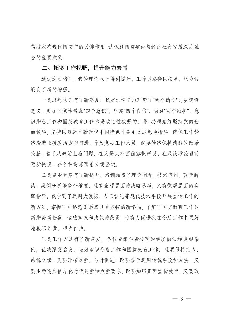 标题:参加2025年意识形态全民国防教育工作专题培训班心得体会