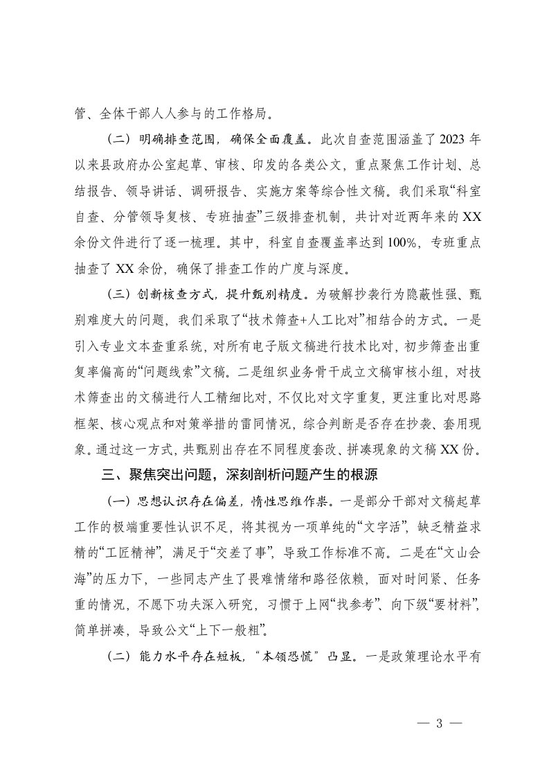 标题:关于开展2025年公文抄袭问题专项整治自查自纠工作的报告