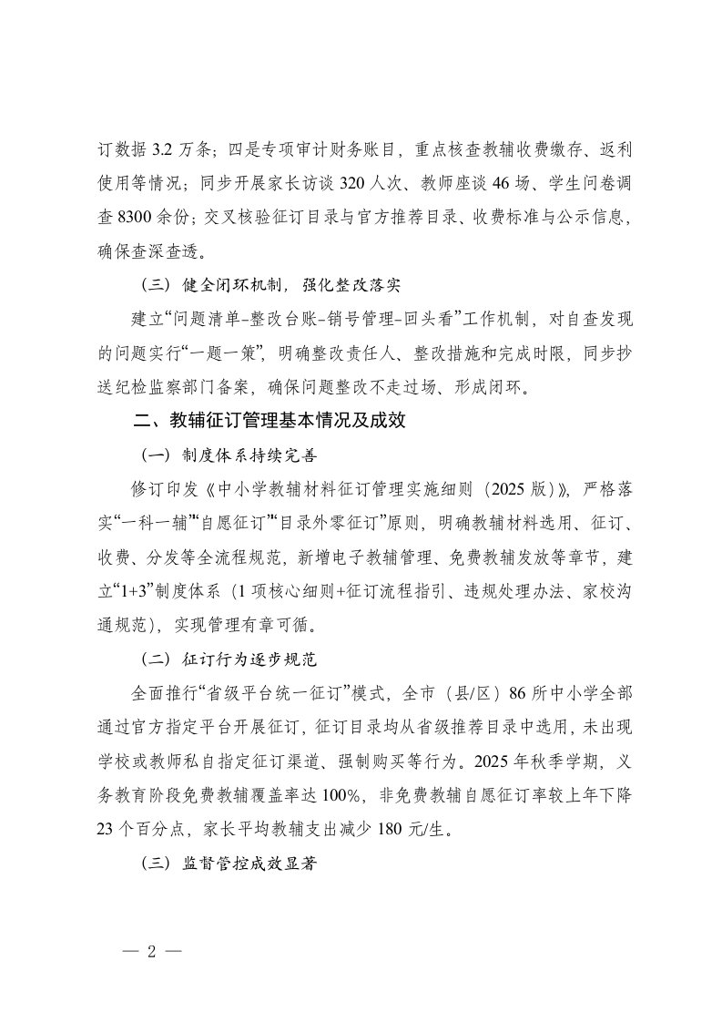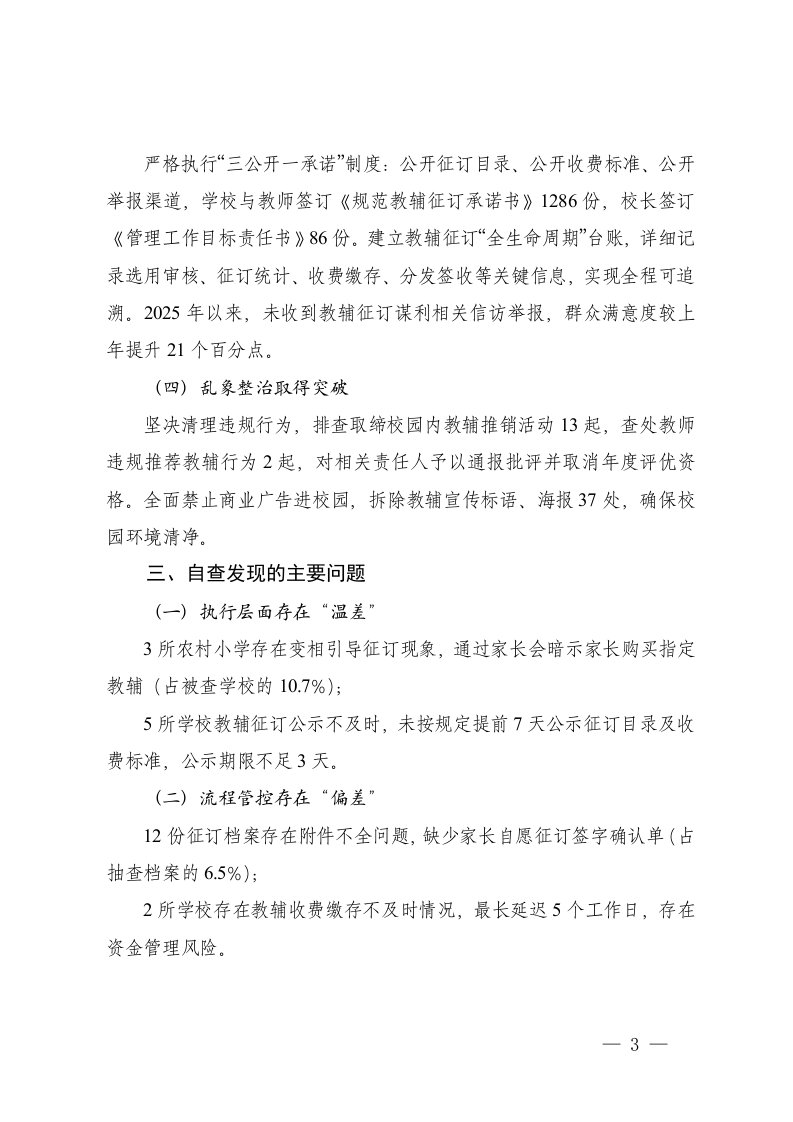 标题:市县区2025年度中小学征订教辅谋利问题整治工作自查报告