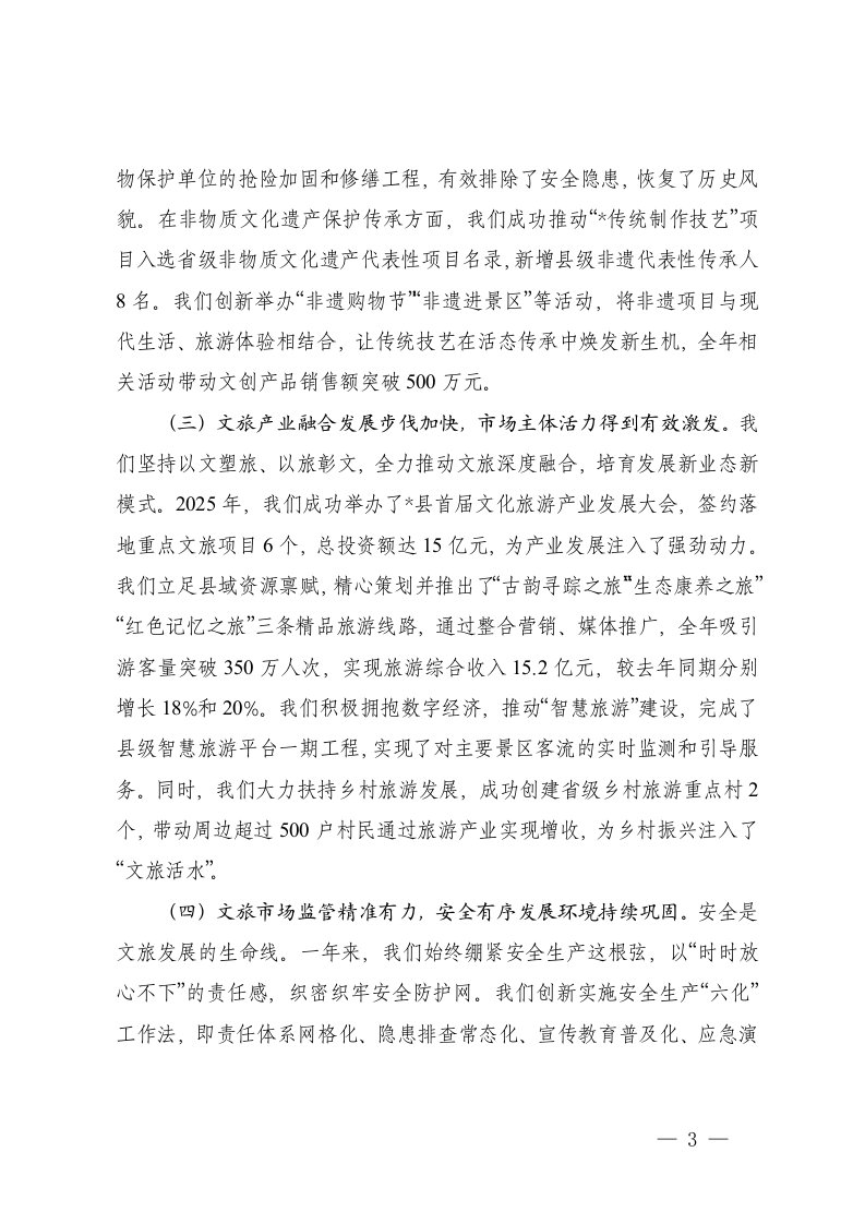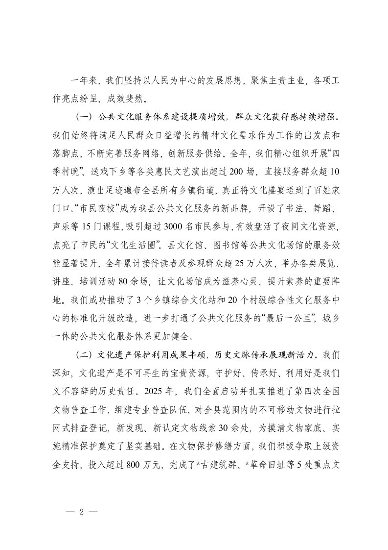 标题:文化广电和旅游局农业农村局2025年工作总结暨2026年工作打算讲话