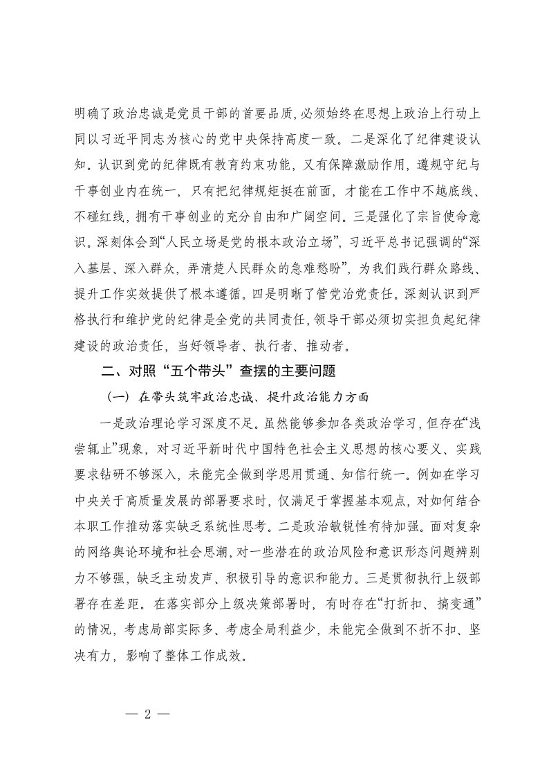 5个带头在带头筑牢政治忠诚提升政治能力方面在带头夯实思想根基锤炼坚强党性方面民主生活会对照检查存的问题及整改措施