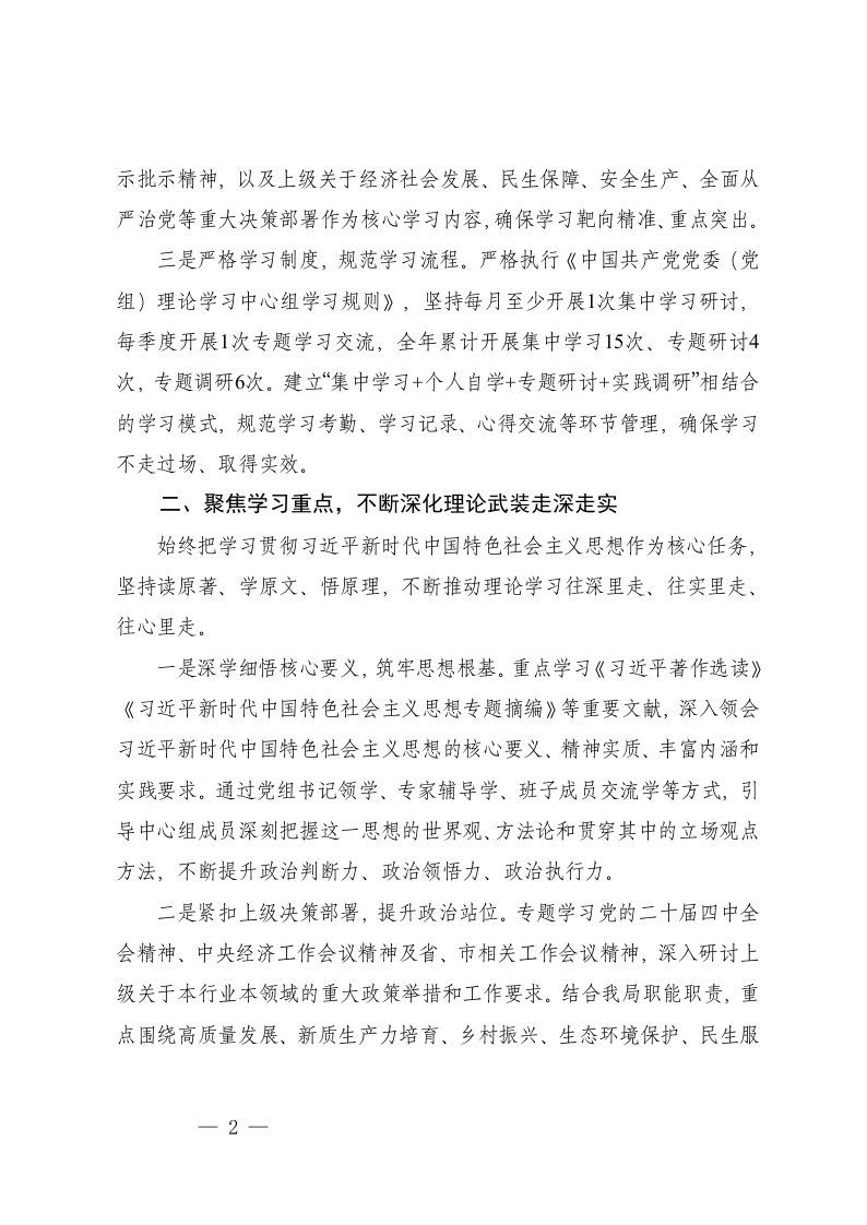 标题:关于2025年度局党组理论学习中心组学习情况的报告