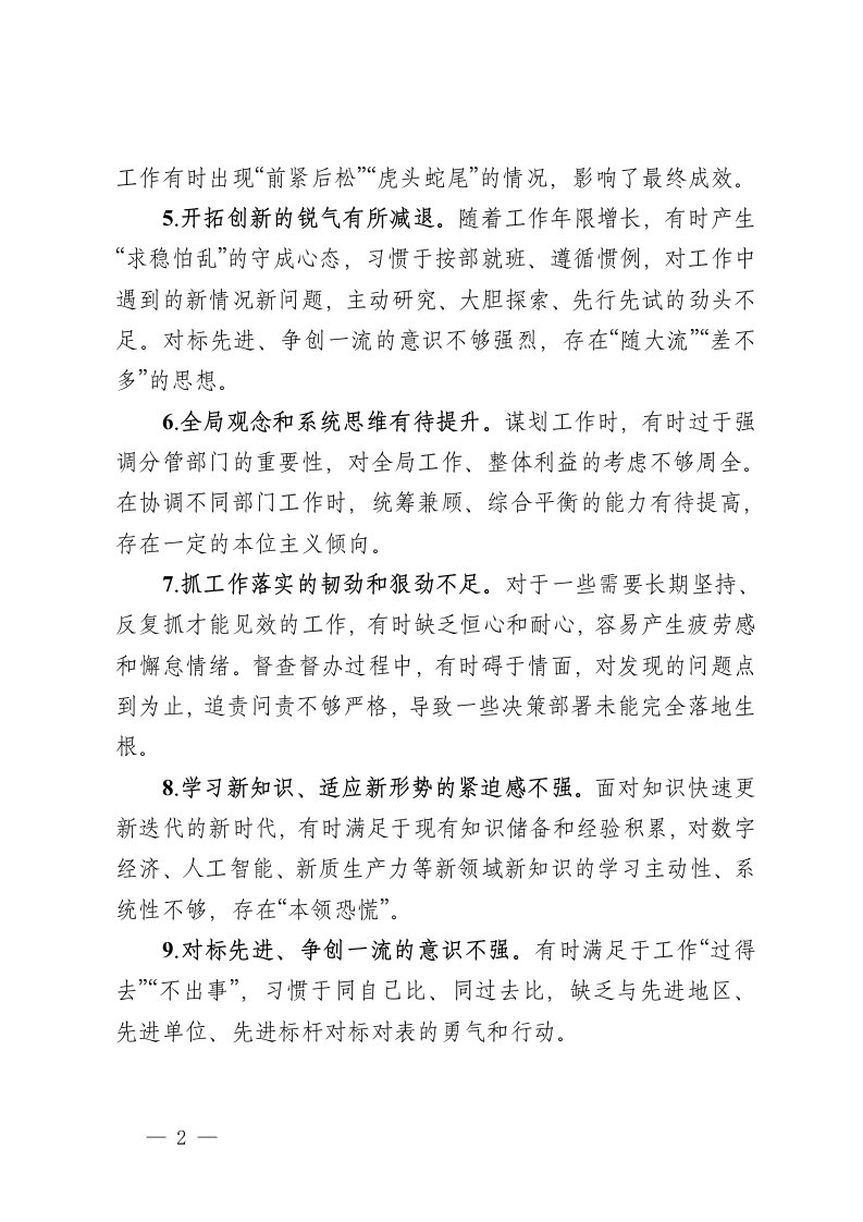 2025年度民主生活会个人对照检查材料之存在问题践行宗旨廉洁自律方面查摆的问题