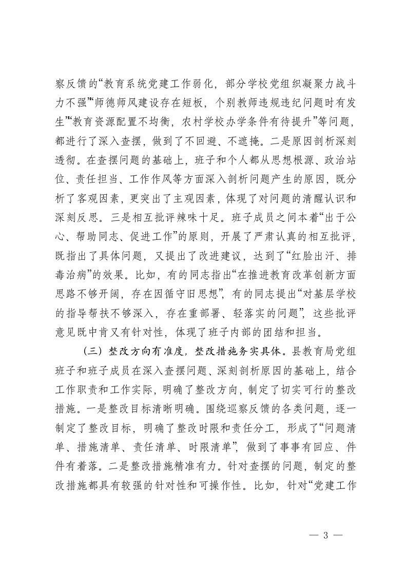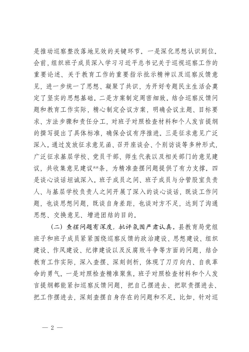 在县教育局巡察整改专题民主生活会上的点评讲话巡察反馈集中整改进展情况的报告集中约谈暨工作推进会上的讲话
