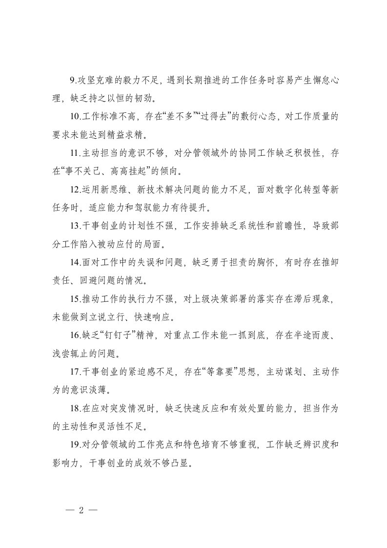 2025年领导干部个人民主生活会对照检视剖析材料带头干事创业担当作为方面存在的问题30条