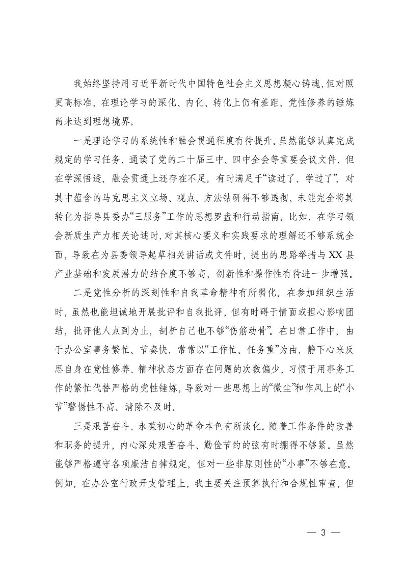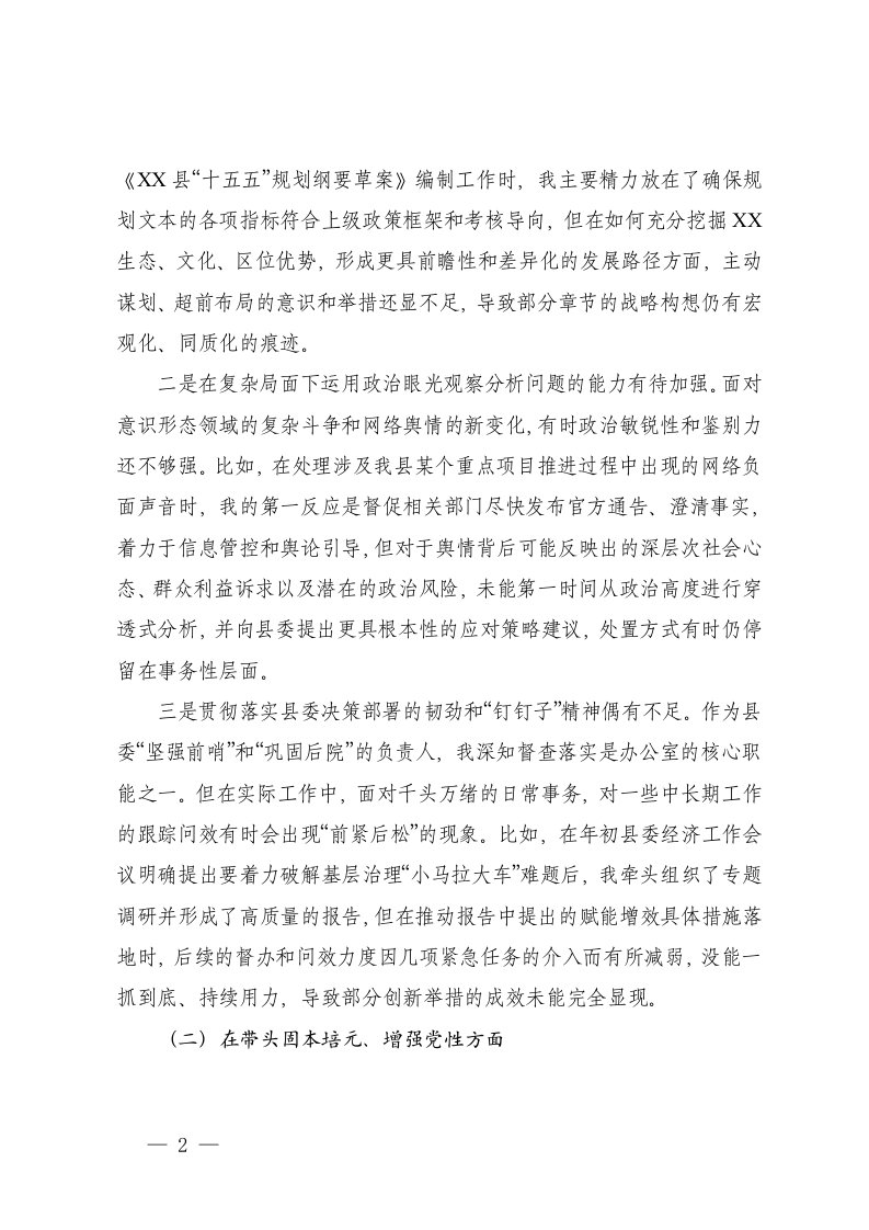 标题:机关办公室主任2025年度民主生活会个人对照检查材料五个带头