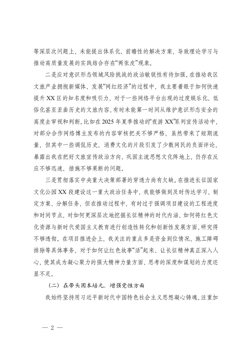 标题:党员干部2025年度民主生活会个人对照检查材料五个带头