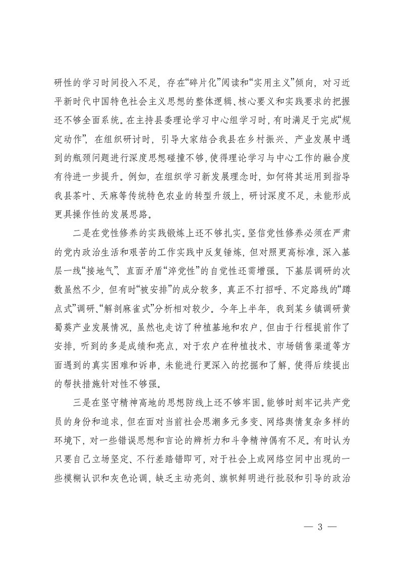 标题:二把手2025年度民主生活会个人对照检查材料五个带头
