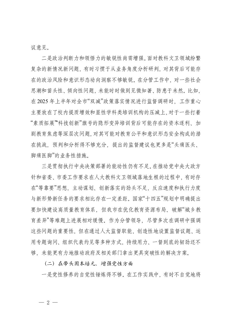标题:副主任2025年度民主生活会个人对照检查材料五个带头