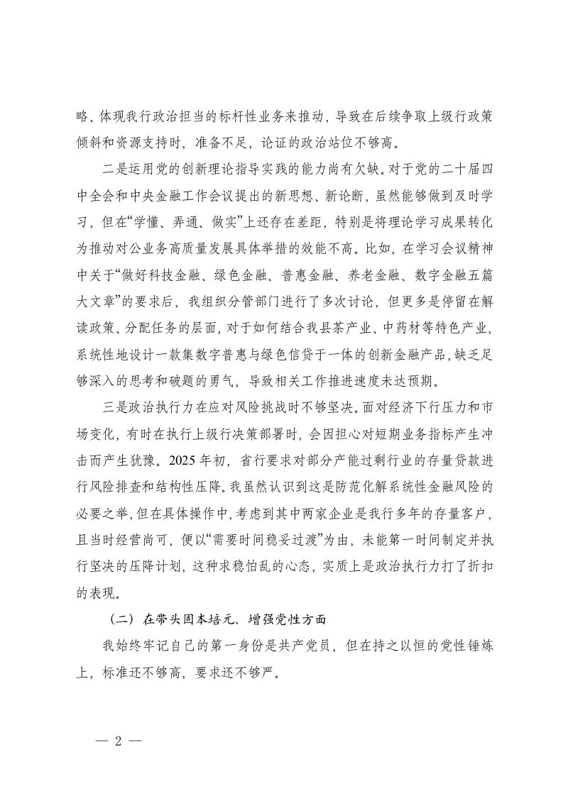 标题:银行2025年度民主生活会个人对照检查材料五个带头
