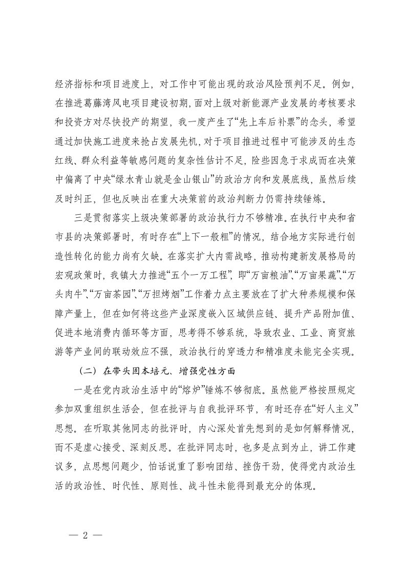 标题:镇长2025年度民主生活会对照检查材料五个带头
