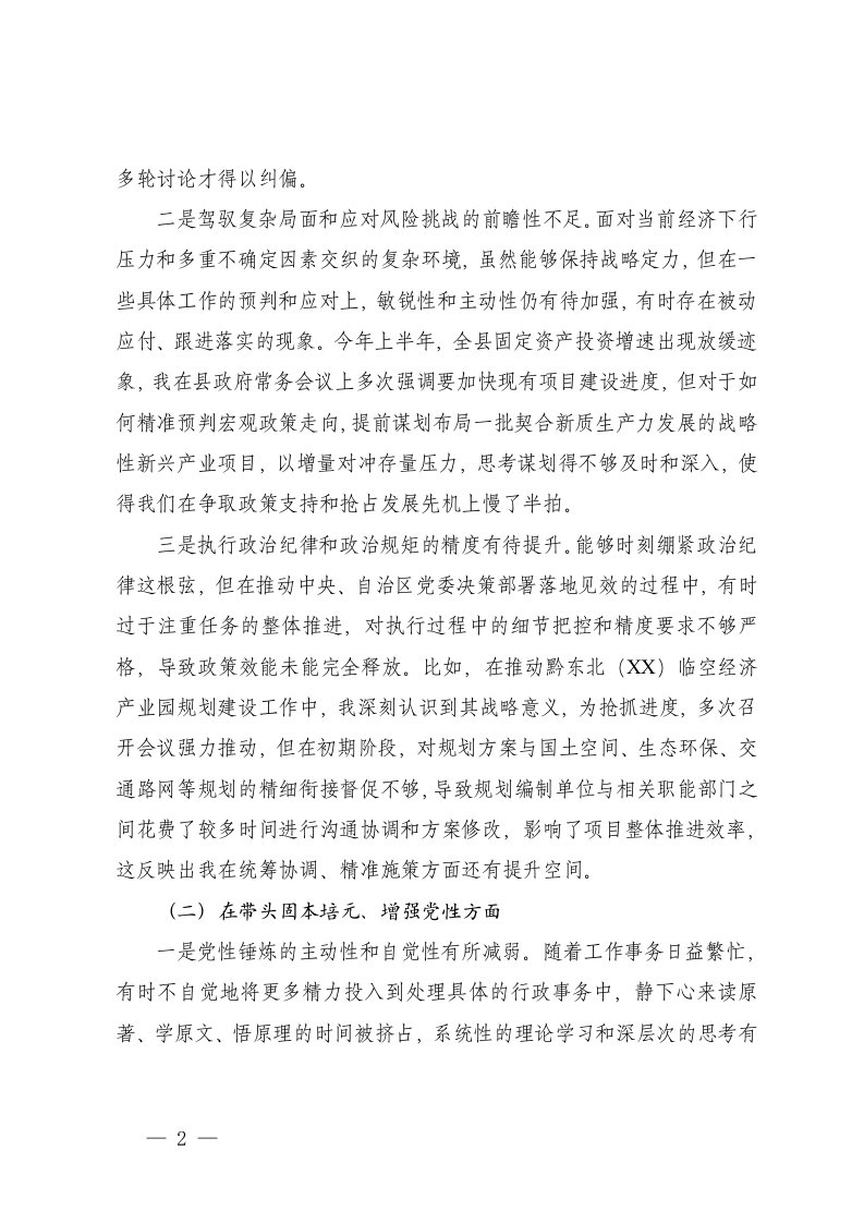 标题:2025年度民主生活会个人对照检查材料五个带头