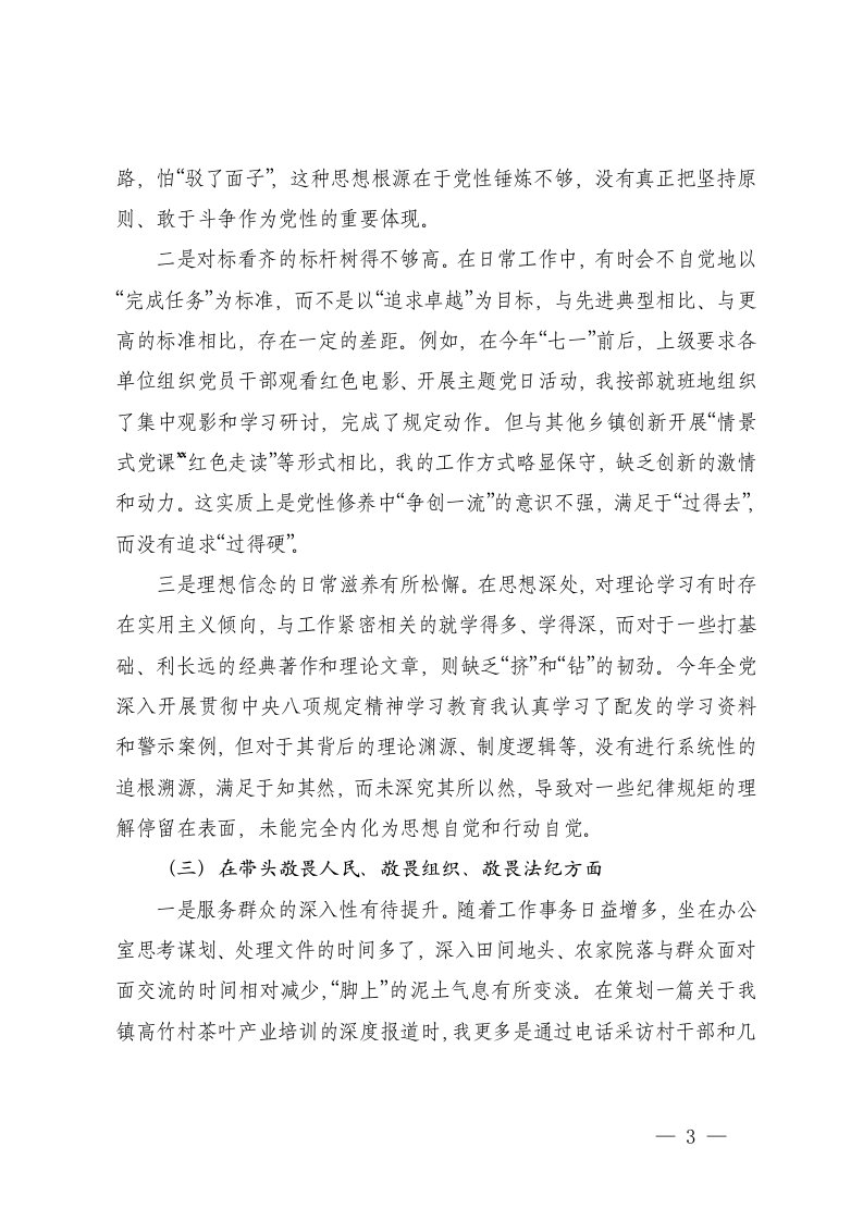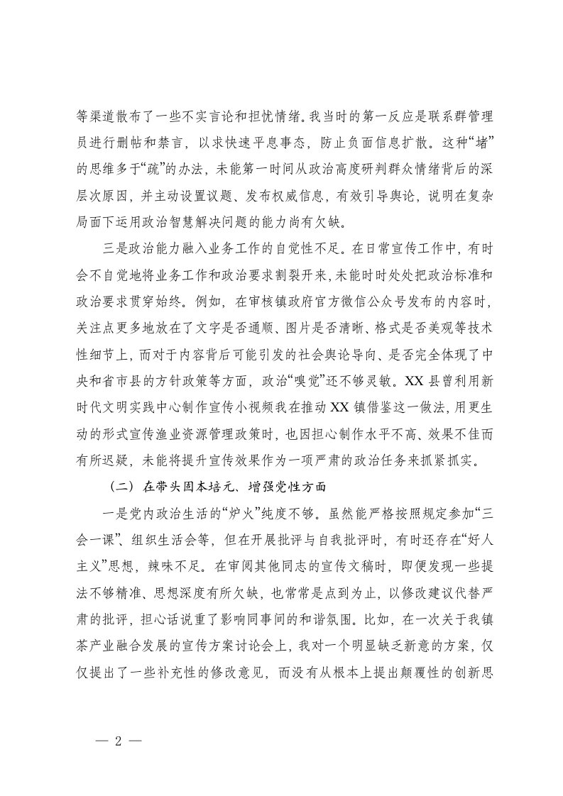 标题:镇宣传委员2025年度民主生活会对照检查材料五个带头