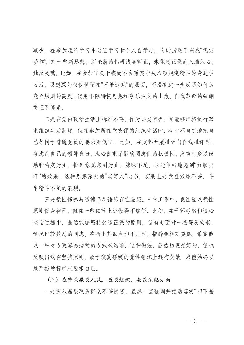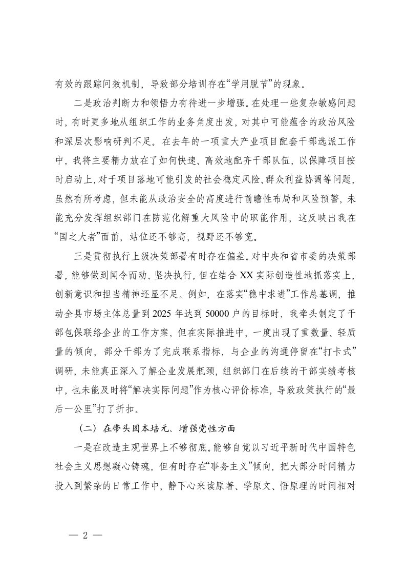 标题:组织部长2025年度民主生活会个人对照检查材料五个带头