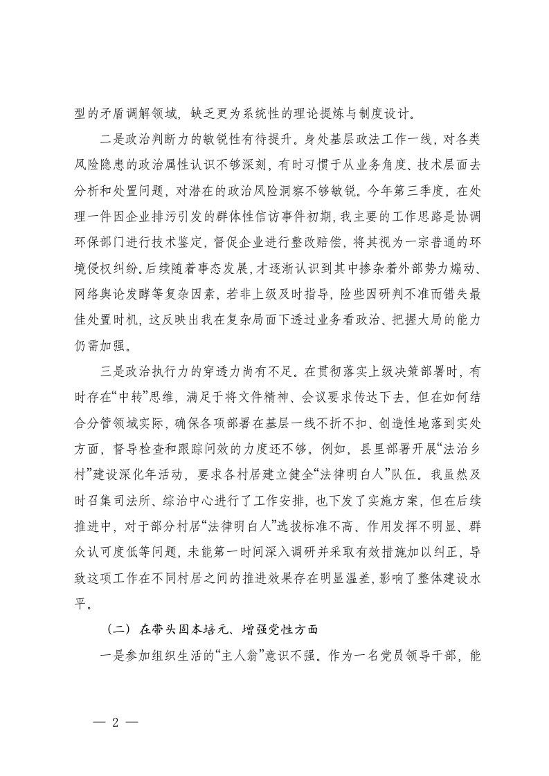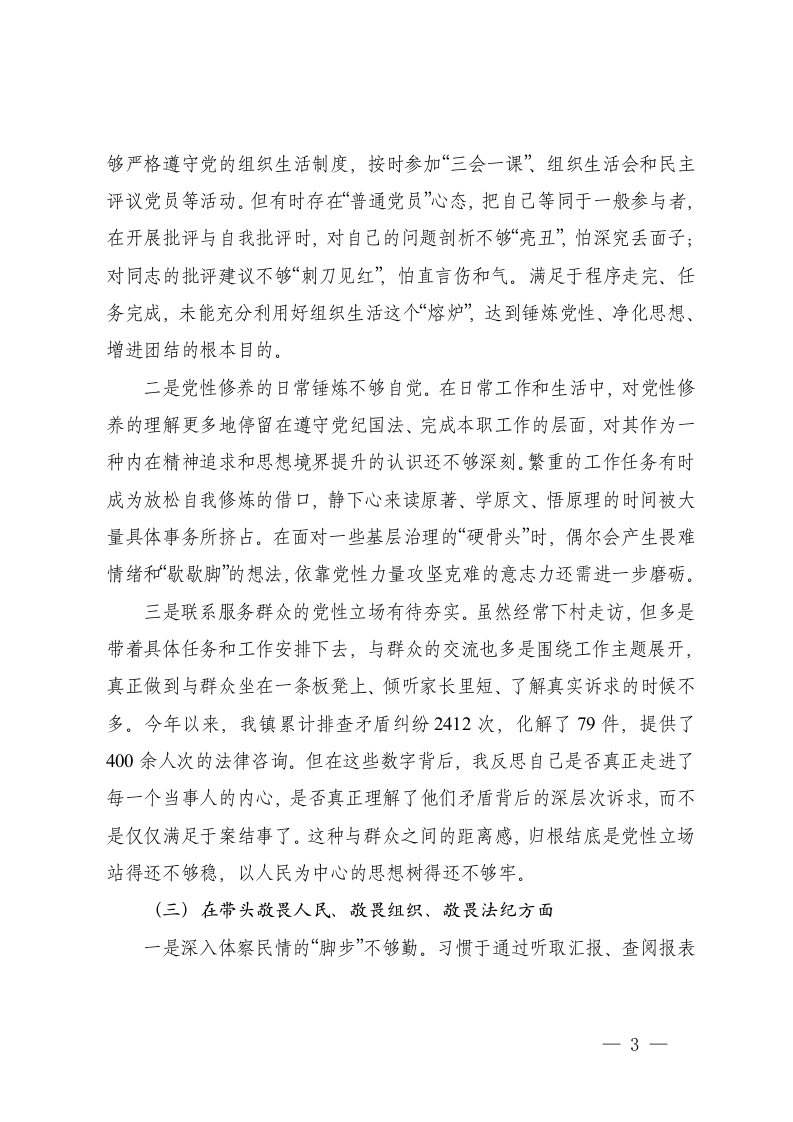 标题:副镇长2025年度民主生活会对照检查材料五个带头