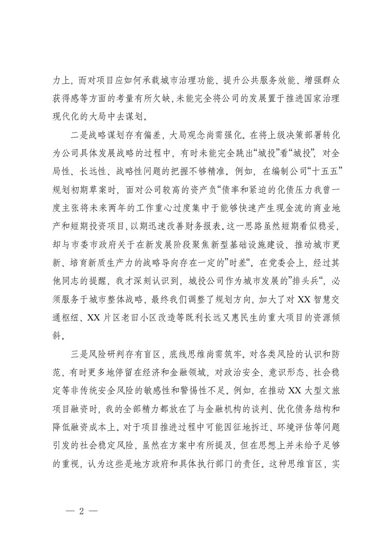 国企党委班子成员2025年度民主生活会个人对照检查材料五个带头