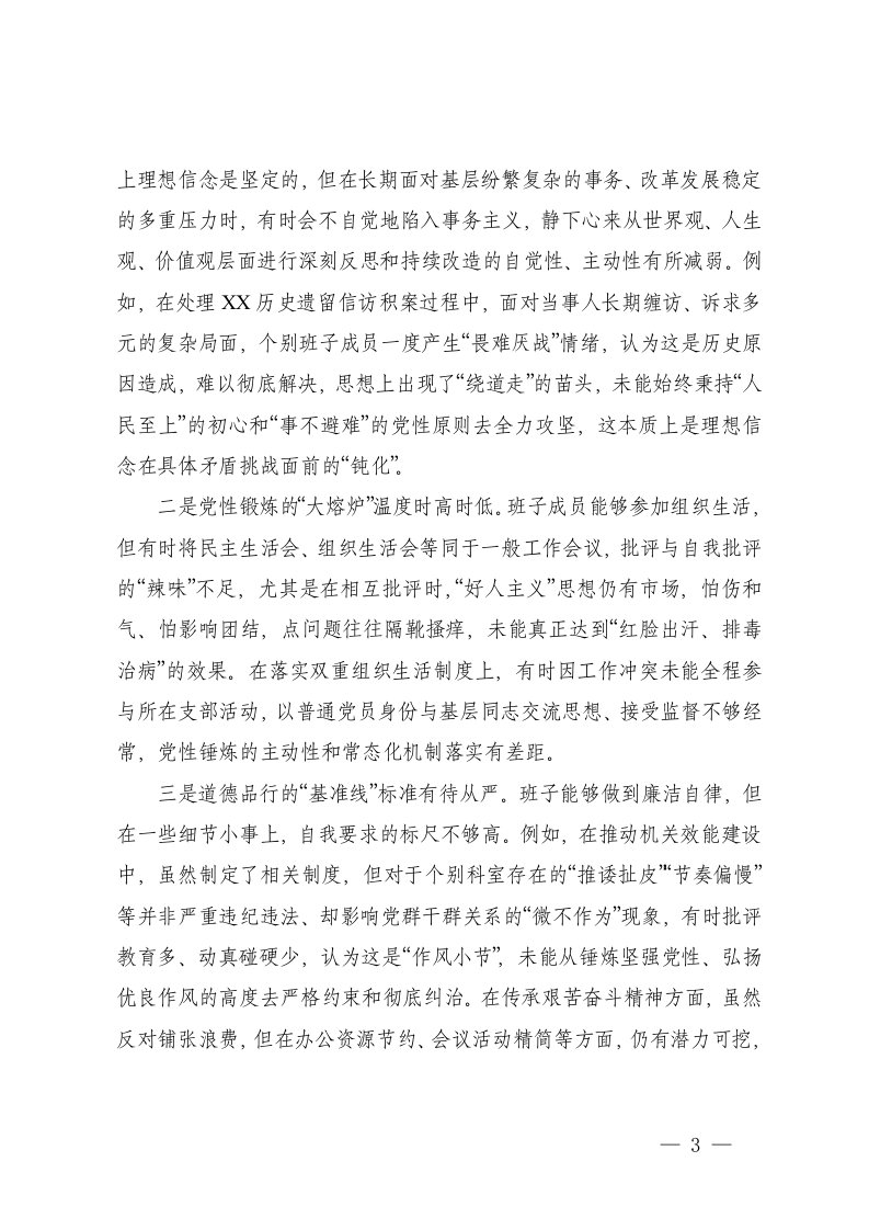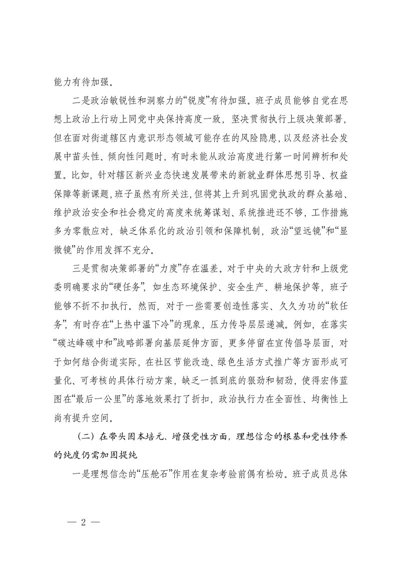 标题:街道党工委2025年度民主生活会班子对照检查材料五个带头