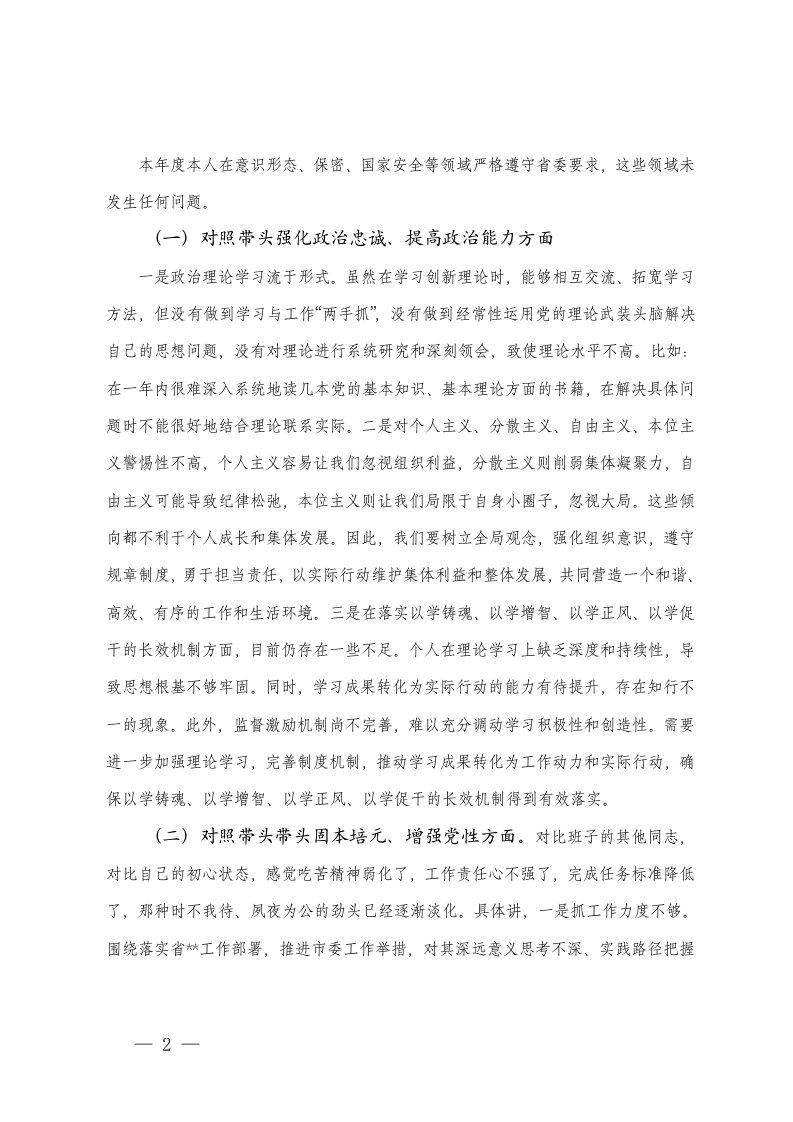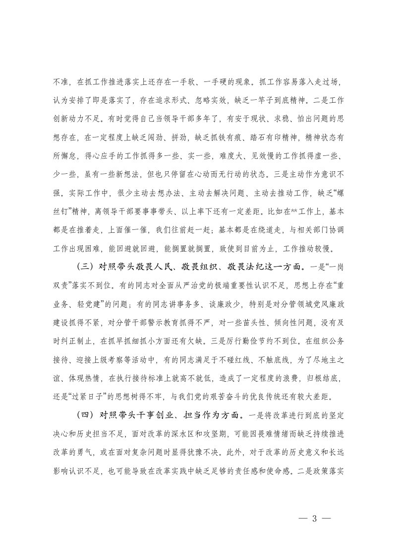 班子个人2025民主生活会五个方面带头对照检查材料强化政治忠诚固本培元三个敬畏干事创业管党治党