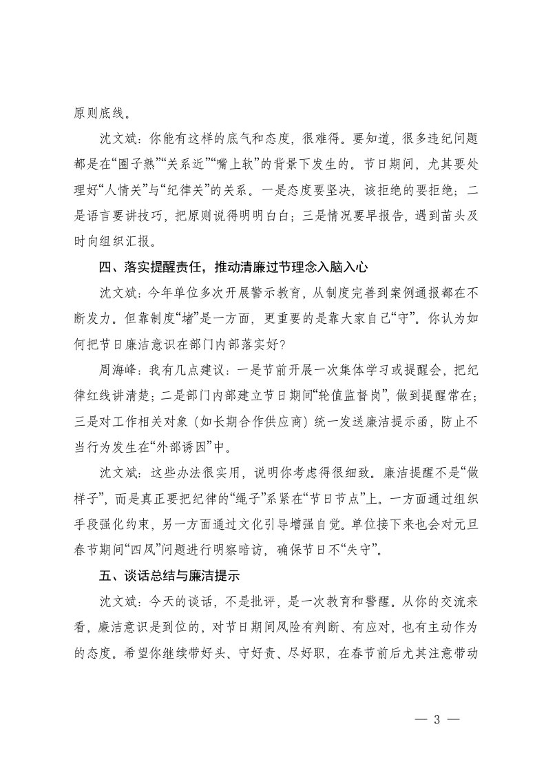标题:2026年元旦春节廉政提醒谈话记录