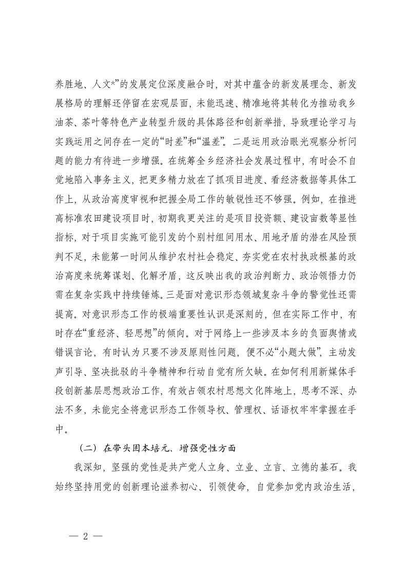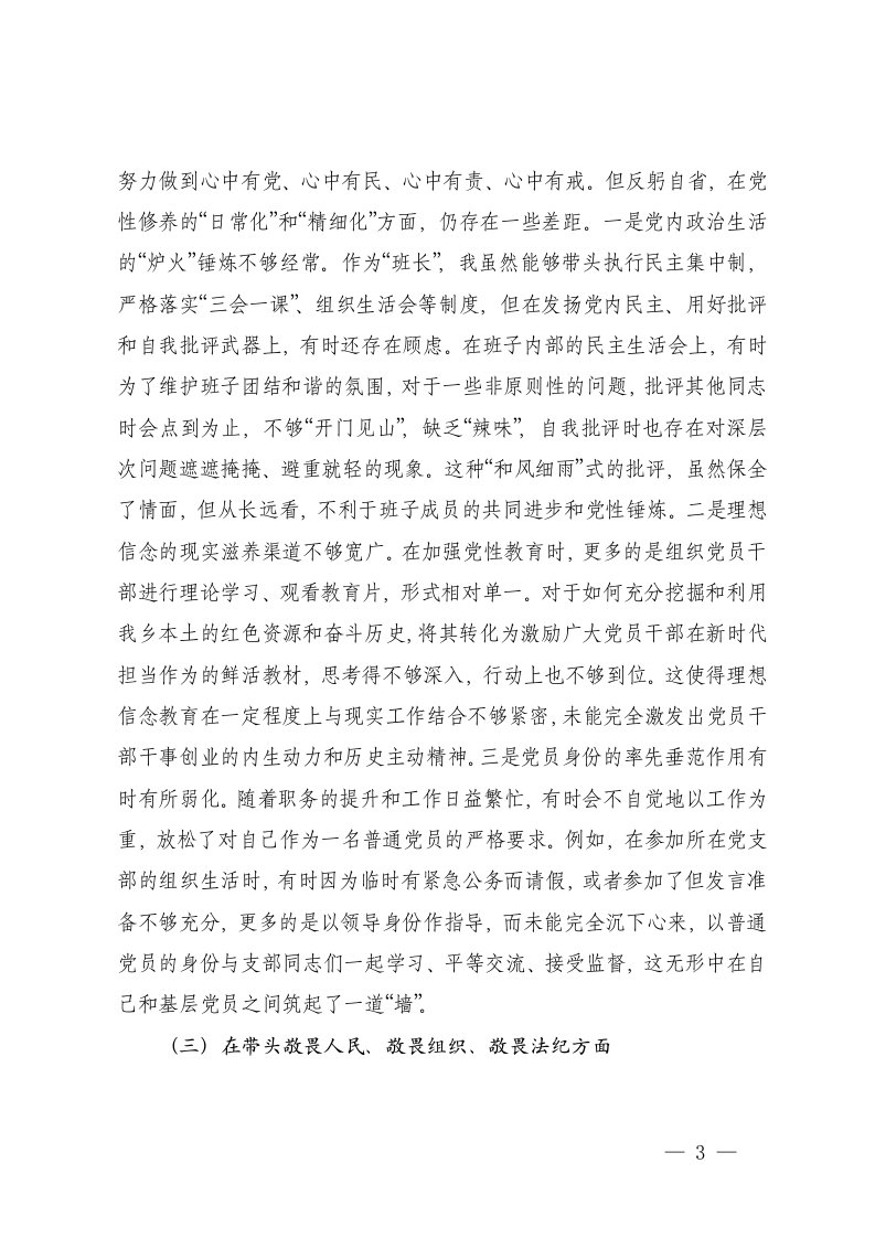 乡党委书记局党组2025年度民主生活会班子对照检查材料五个带头