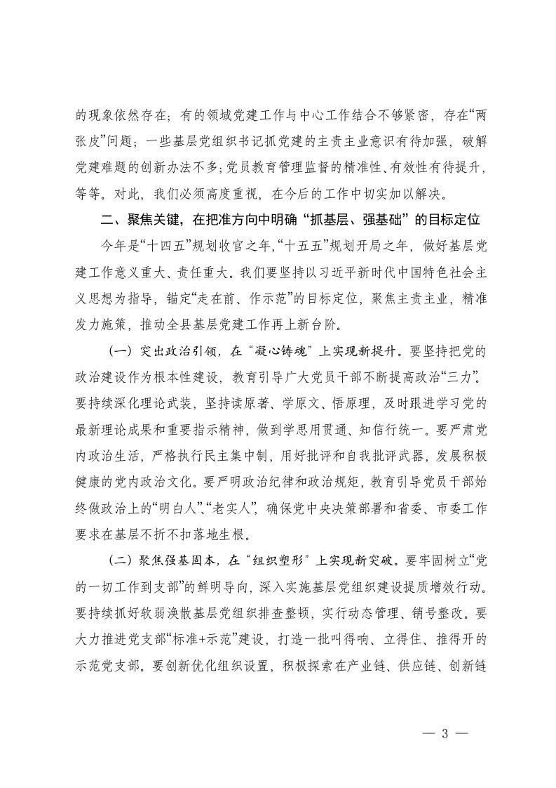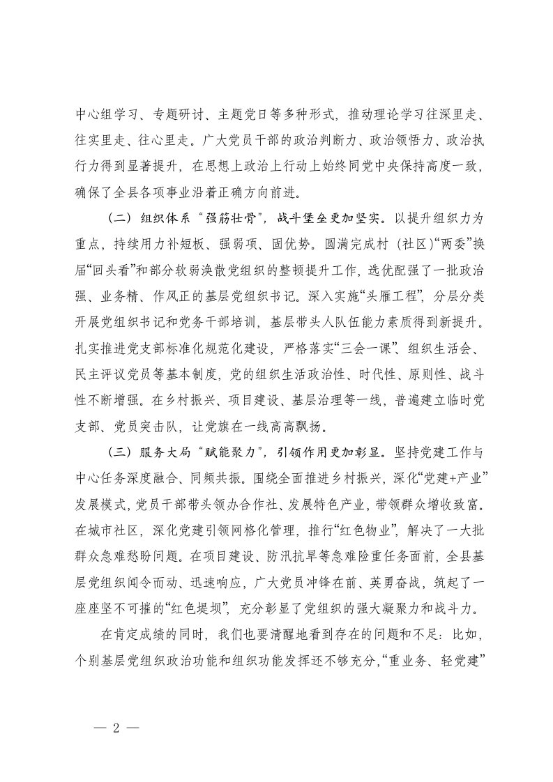 标题:县委书记区委书记在全县基层党建述职评议工作会议上的讲话