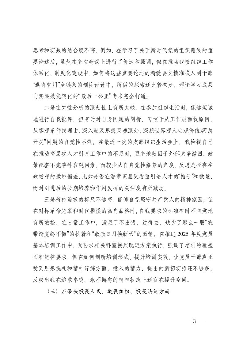 五个带头高校党委常委组织部部长2025年度民主生活会个人对照检查材料
