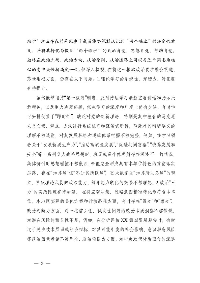 2025年度领导班子民主生活会六个带头对照检查材料深反思树新风严要求善改进