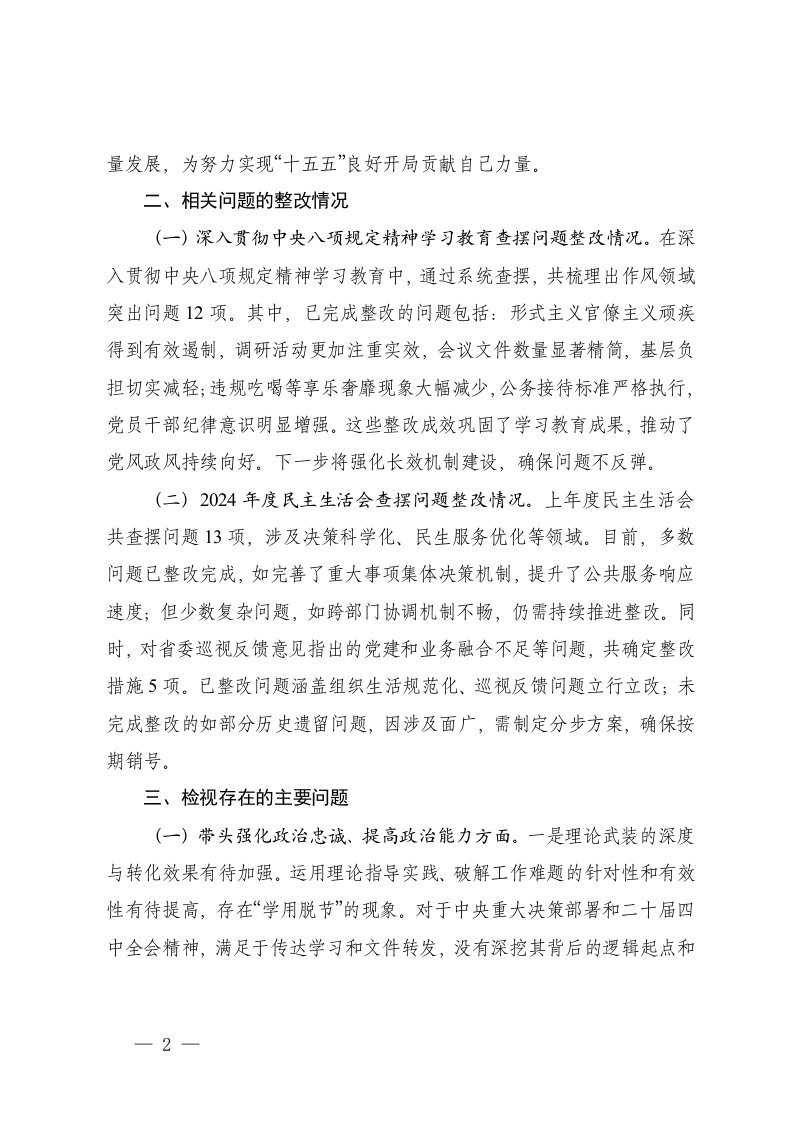 标题:2025年度民主生活会个人对照五个方面检查发言提纲五个方面