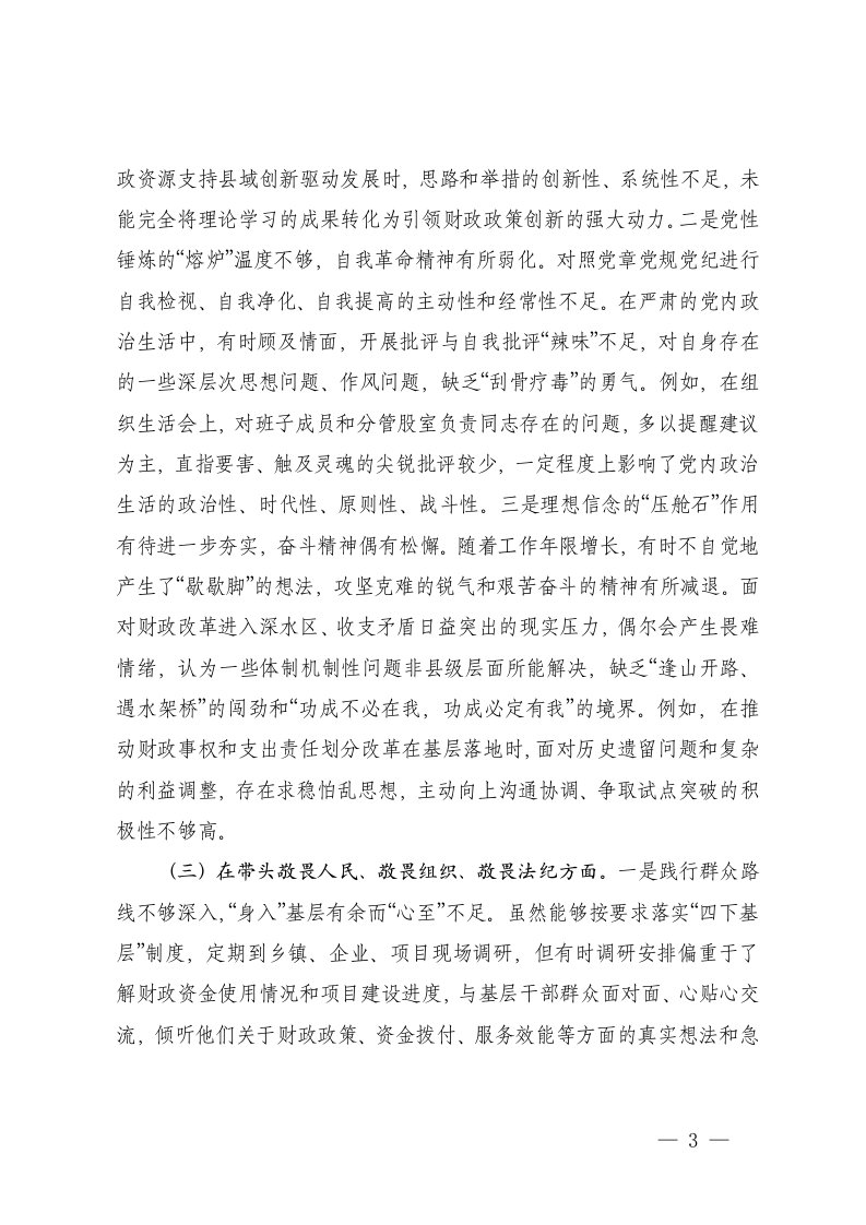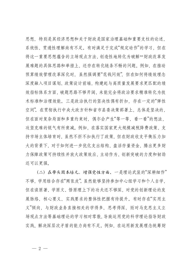 标题:财政局党组书记2025年度民主生活会个人对照检查材料五个带头