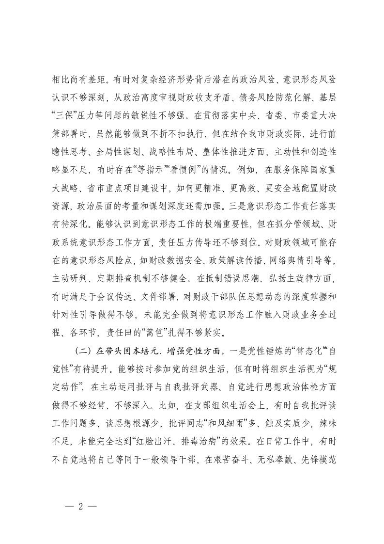 标题:财政主管部门党组书记2025年度民主生活会五个带头对照检查材