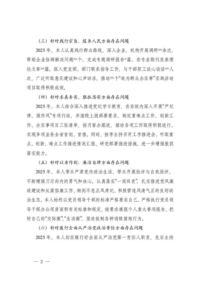 标题:党委书记2026年民主生活会个人五个方面对照检查材料