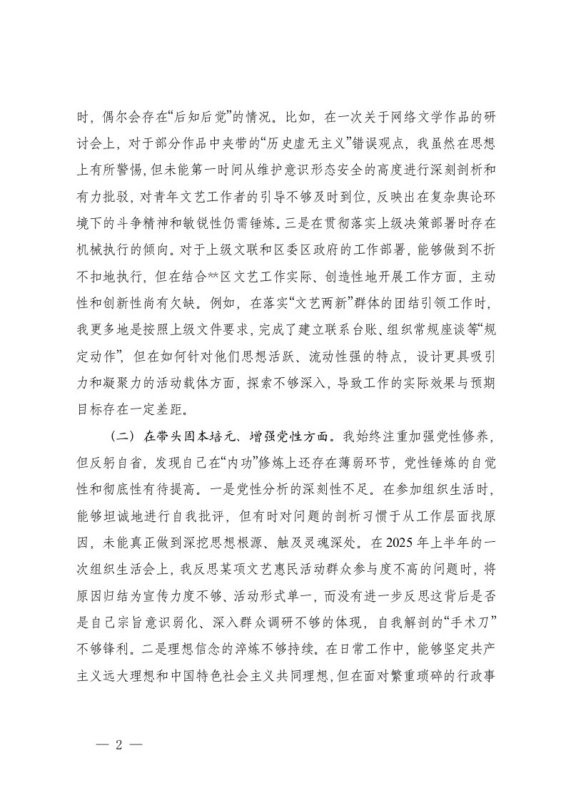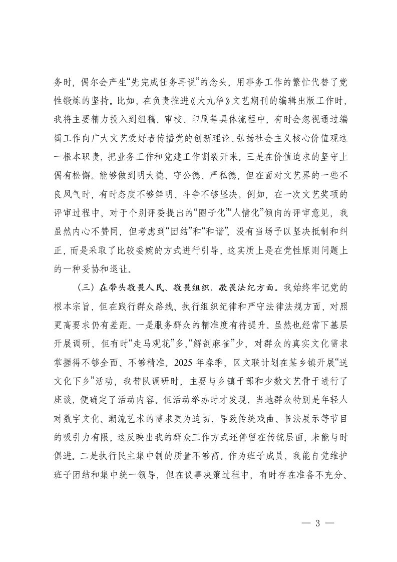 标题:党组成员2025年度民主生活会个人对照检查材料五个带头