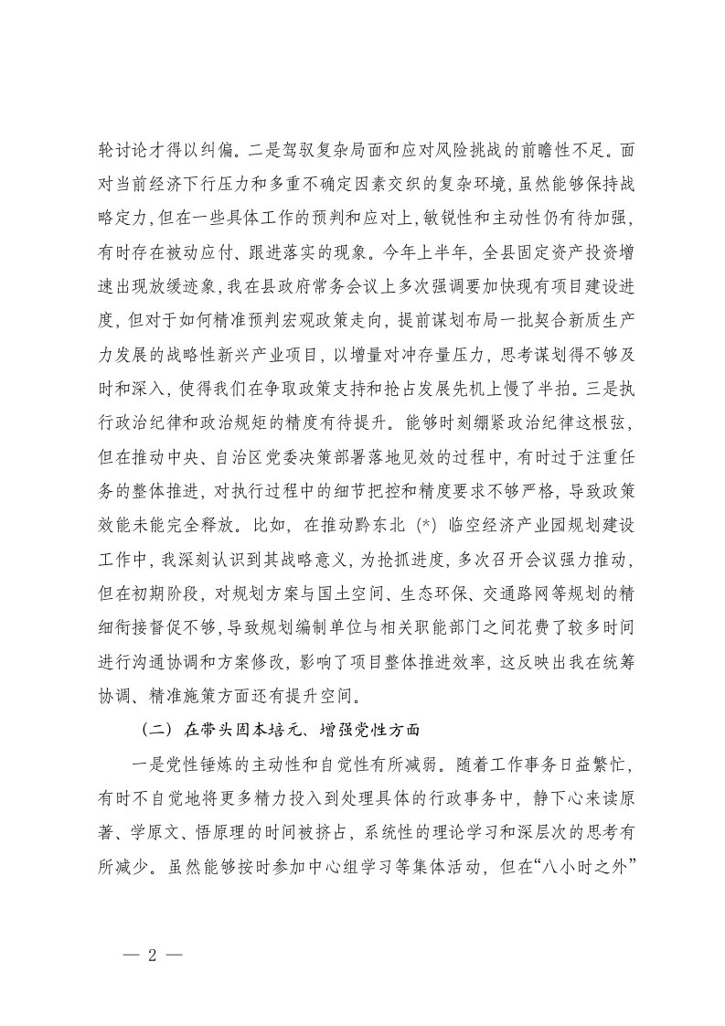 标题:地委一把手2025年度民主生活会个人五个带头对照检查材料
