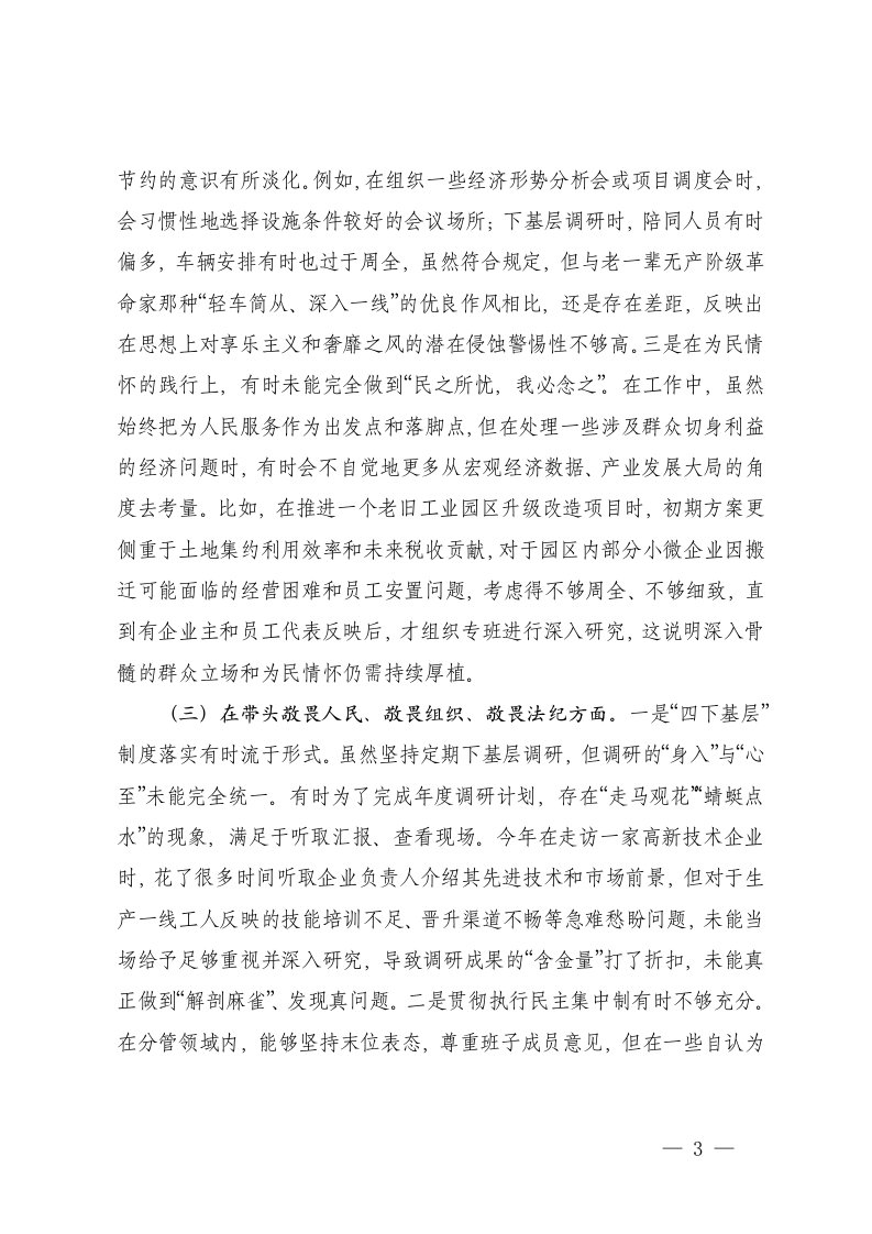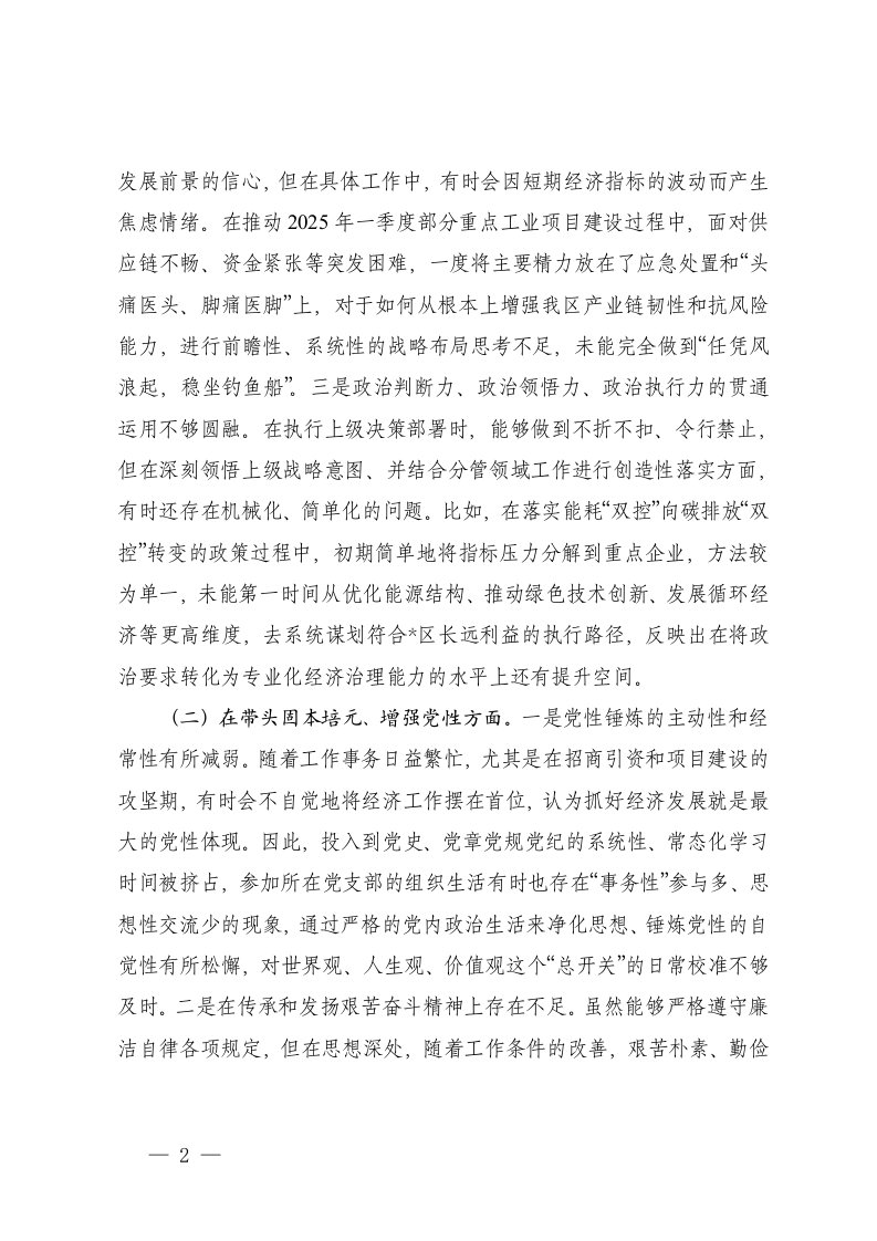 标题:分管经济副区长2025年度民主生活会个人对照检查材料五个带头
