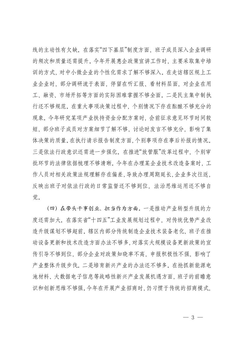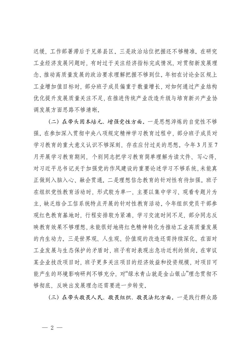 标题:工信局2025年度民主生活会班子对照检查材料五个带头