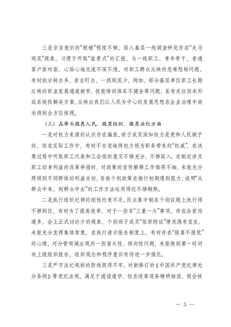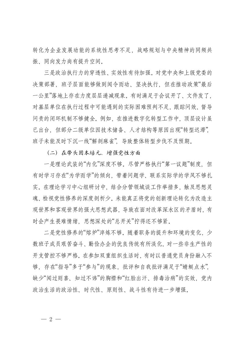 标题:集团领导班子2025年度民主生活会对照检查材料